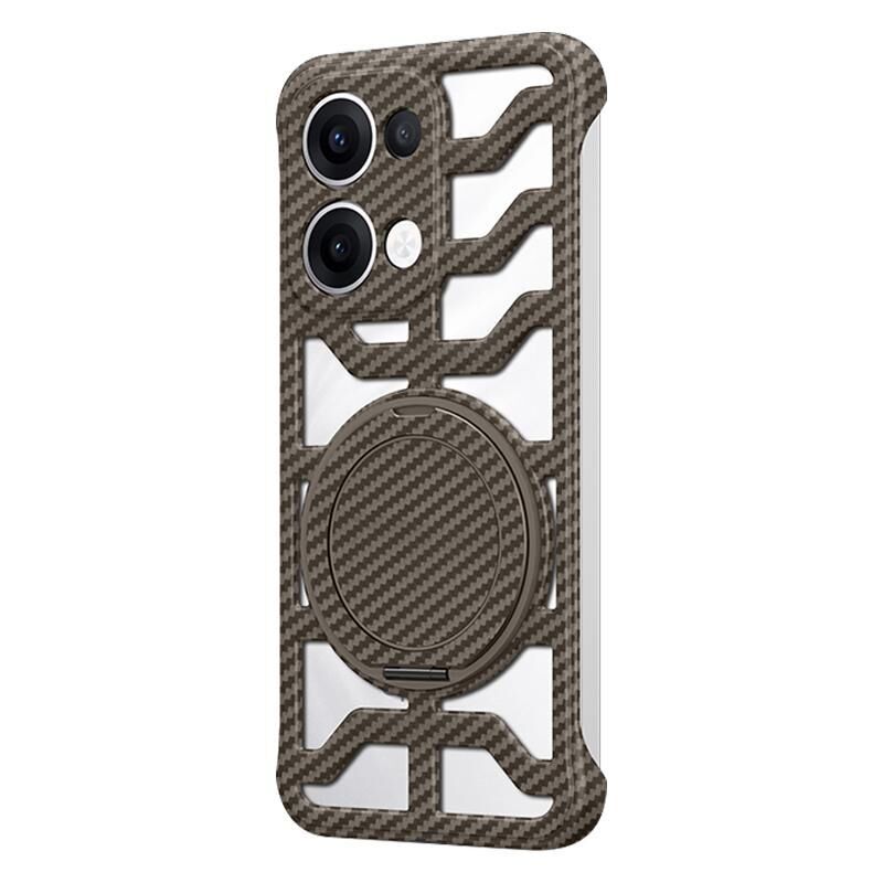 For OPPO Reno13 Global Hollow Carbon Fiber Rotating Bracket MagSafe Phone Case(Gold)