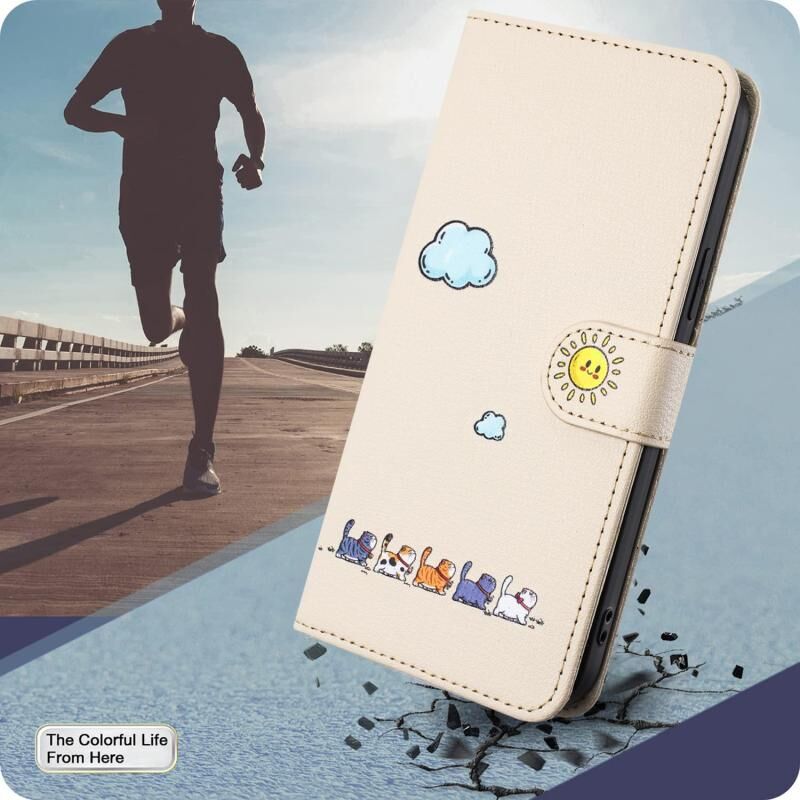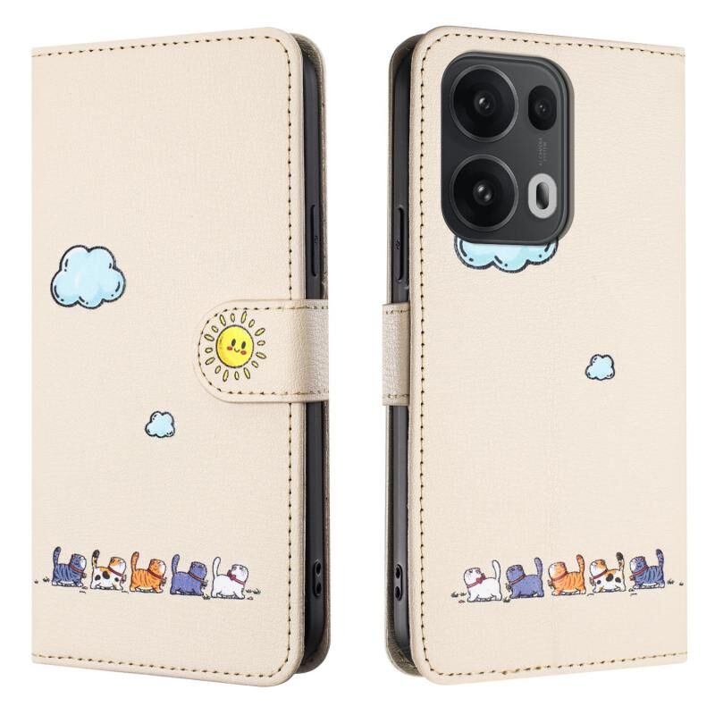 Θήκη τηλεφώνου από δέρμα με σχέδια κινούμενων σχεδίων για OPPO Reno13 Pro 5G (Μπεζ-Λευκό)