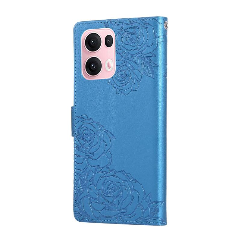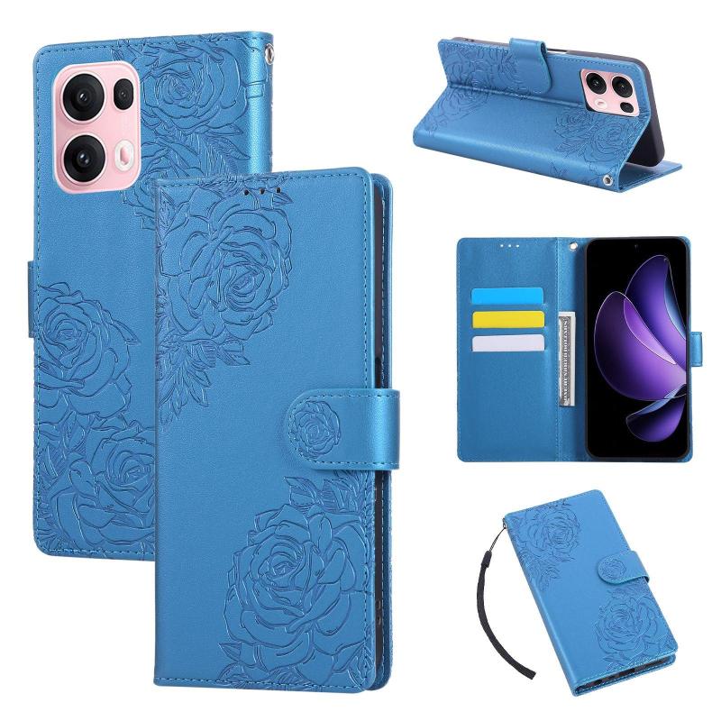 For OPPO Reno13 Pro 5G Global Rose Flower Embossed 3-Card Slots Leather Phone Case(Blue)