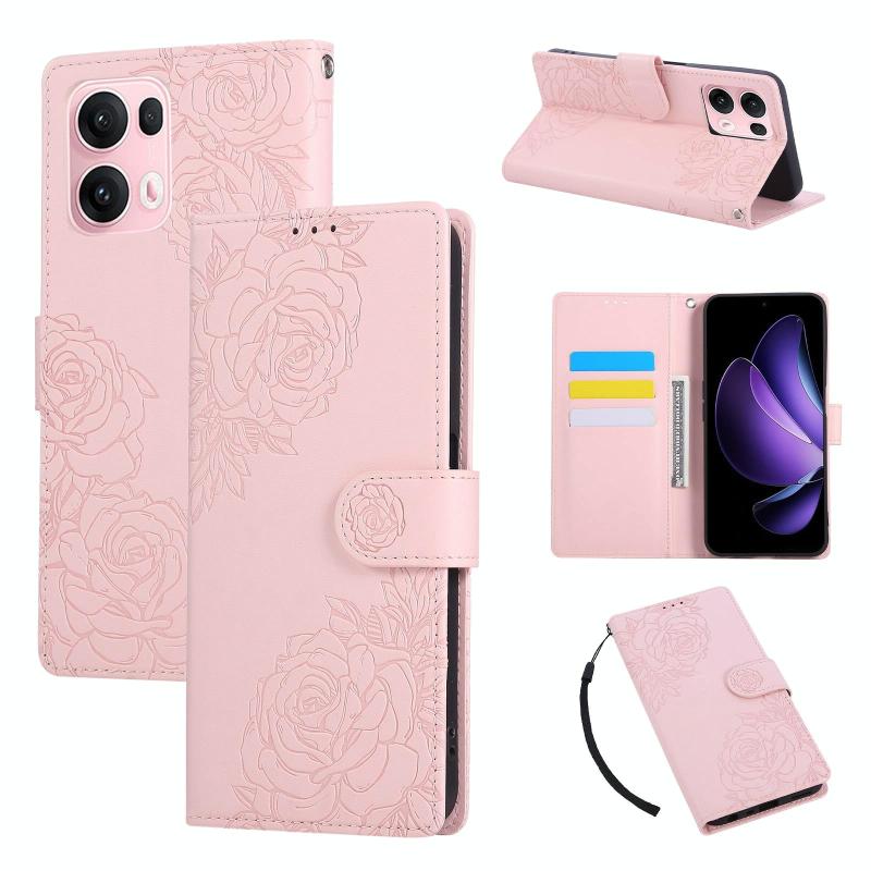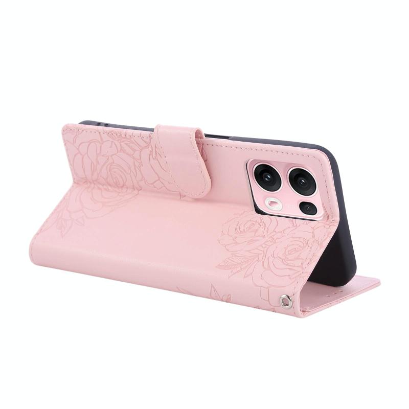 Θήκη δέρματος με ανάγλυφο λουλούδι για OPPO Reno13 Pro 5G Global (Ροζ)