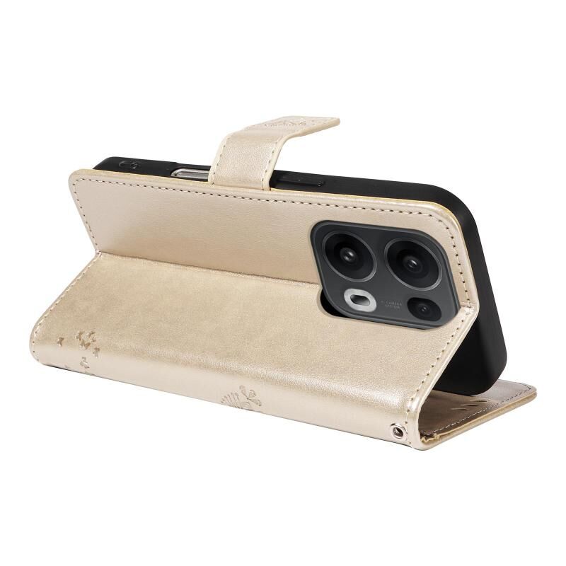 Θήκη τηλεφώνου από δέρμα με σχέδιο αναγλύφου δέντρου & γάτας για OPPO Reno13 Pro 5G (Ροζ)