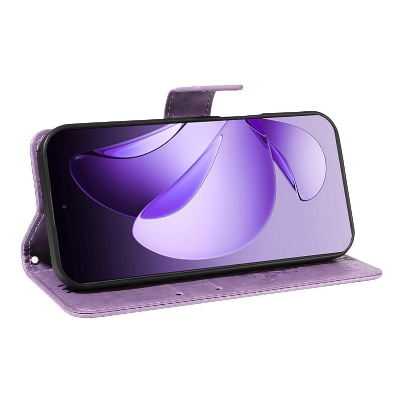 Θήκη τηλεφώνου από δέρμα με σχέδιο αναγλύφου δέντρου & γάτας για OPPO Reno13 Pro 5G (Ροζ)