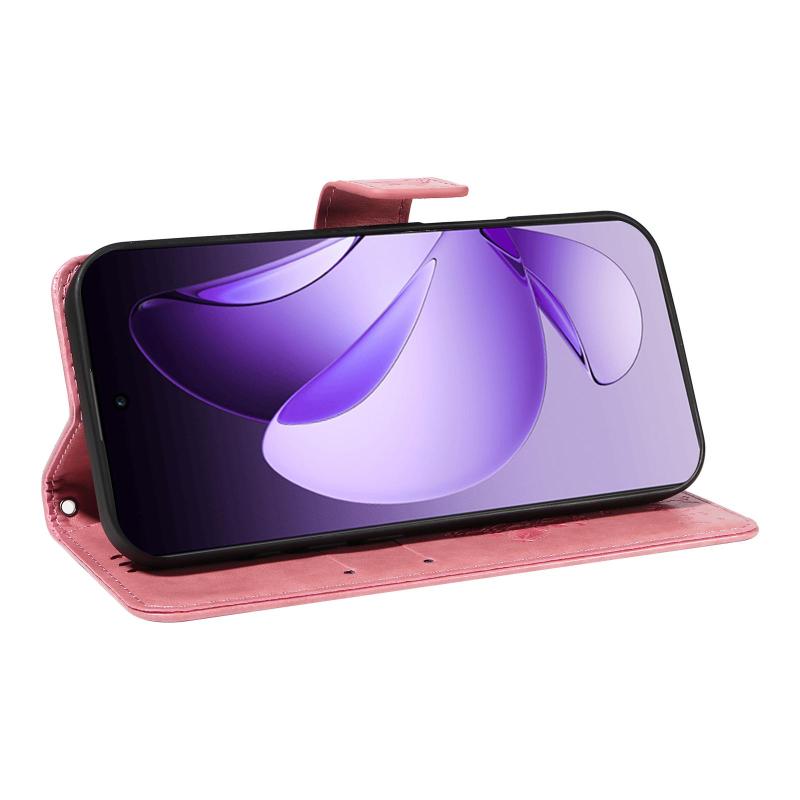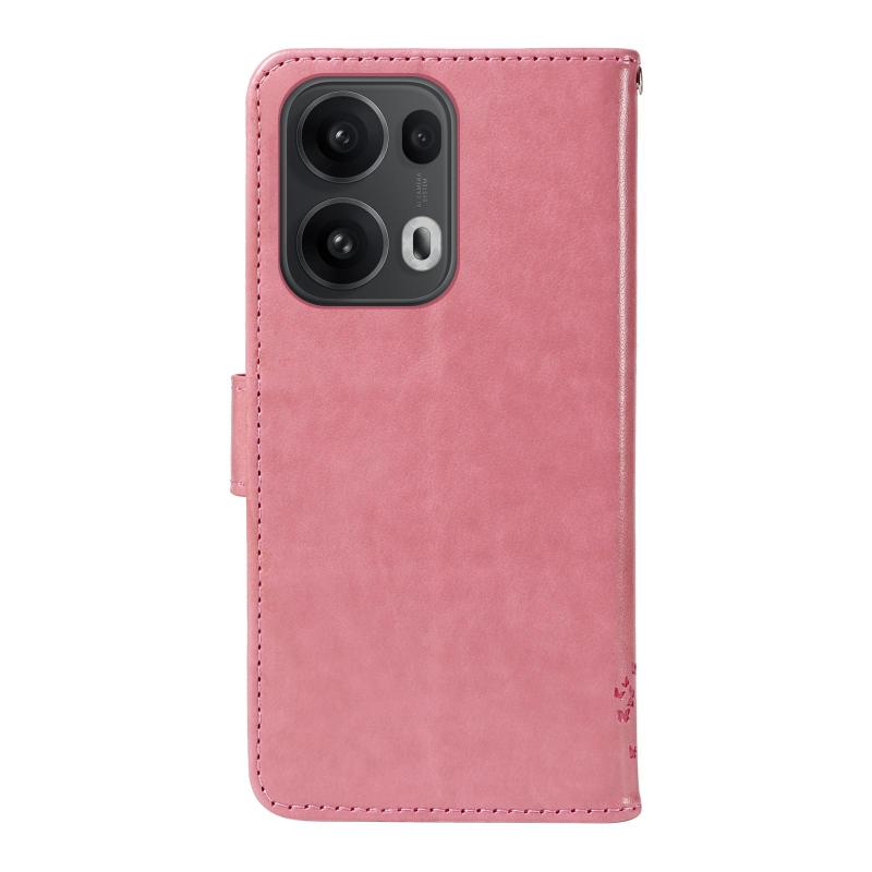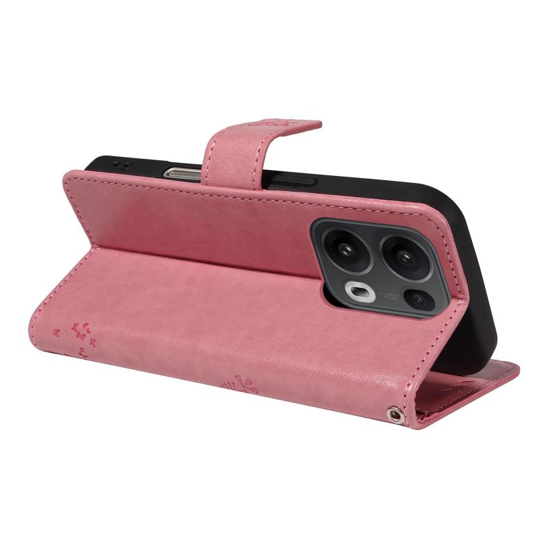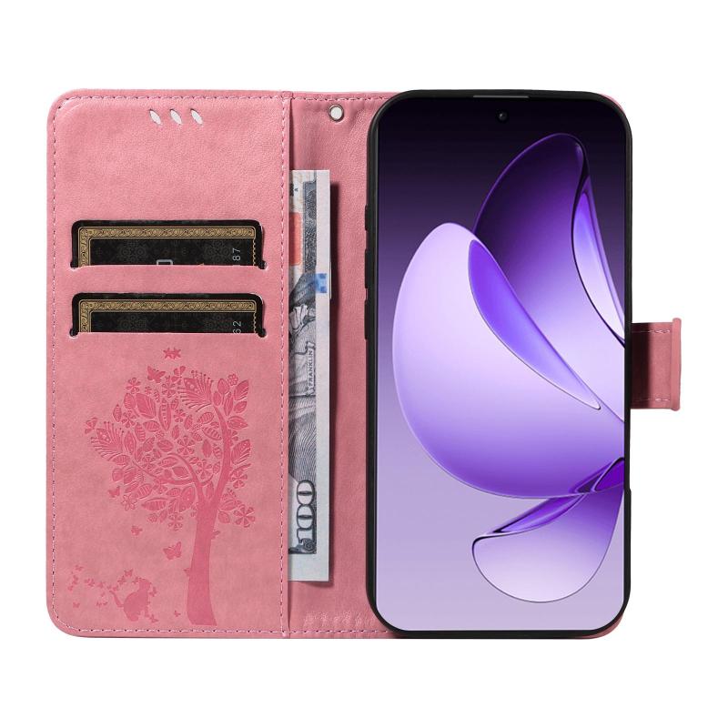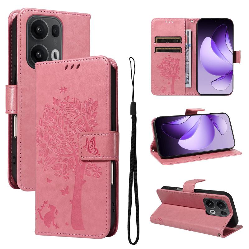 For OPPO Reno13 Pro 5G Global Tree & Cat Embossed Pattern Flip Leather Phone Case(Pink)