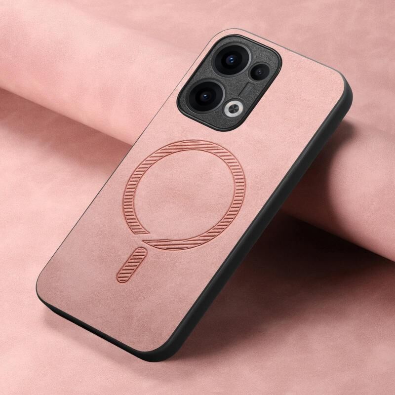 Θήκη κινητού τηλεφώνου OPPO Reno13 Pro 5G Retro Magsafe Μαγνητική PU Πίσω Κάλυψη (ρόζ)