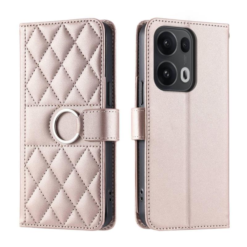 For OPPO Reno13 Pro 5G Ring Buckle Rhombic Leather Phone Case(Rose Gold)