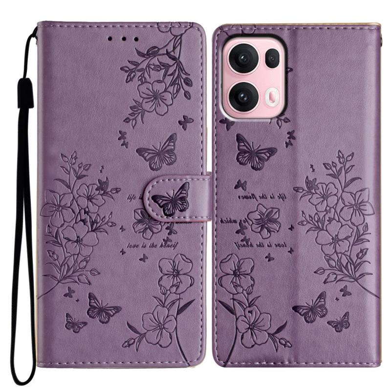 For OPPO Reno13 Pro Global Butterflies and Flowers Leather Phone Case(Purple)
