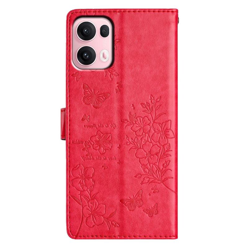 For OPPO Reno13 Pro Global Butterflies and Flowers Leather Phone Case(Red)
