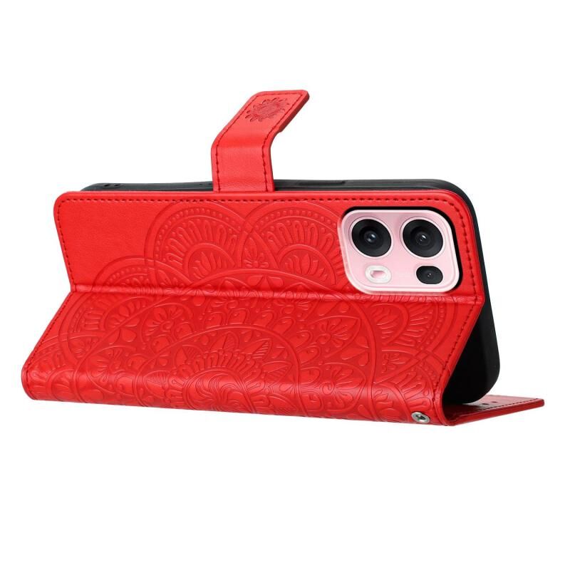 Θήκη τηλεφώνου από δέρμα με ανάγλυφο λουλούδι για OPPO Reno13 Pro Global (Κόκκινο)