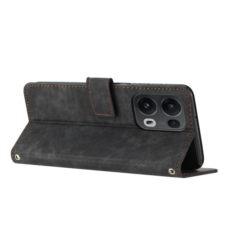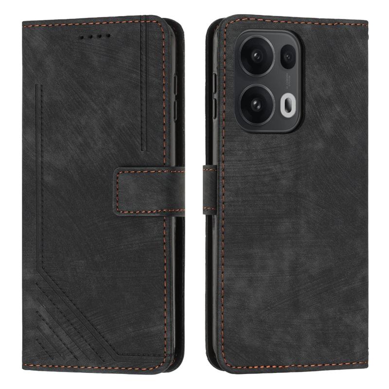 For OPPO Reno13 Pro Global Skin Feel Stripe Pattern Leather Phone Case with Long Lanyard(Black)