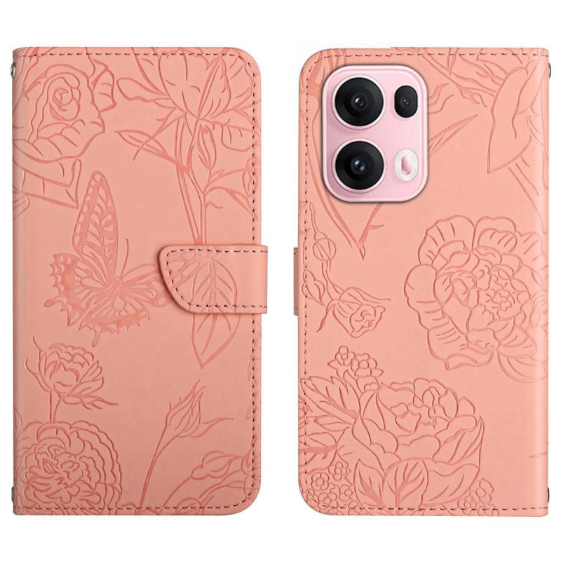 For OPPO Reno13 Pro HT03 Skin Feel Butterfly Embossed Flip Leather Phone Case(Pink)