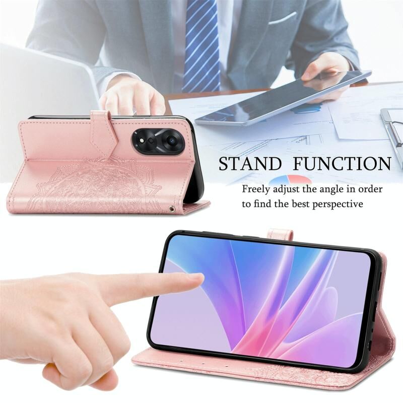 Θήκη τηλεφώνου από δέρμα με ανάγλυφο σχέδιο Mandala Flower για OPPO Reno13 Pro (Μπλε)