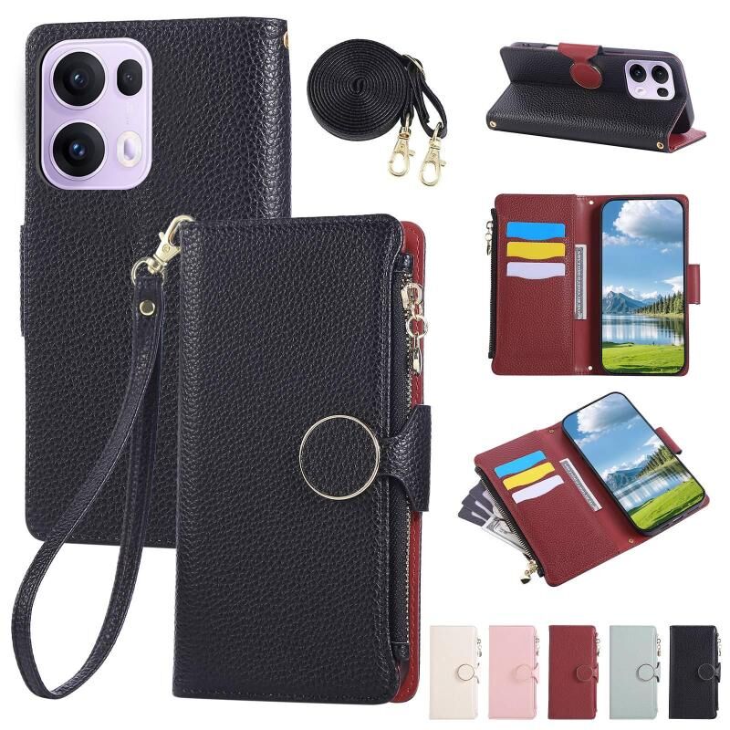 Θήκη τηλεφώνου δερμάτινη με φερμουάρ και λουρί crossbody για OPPO Reno13 Pro, ροζ (με στρογγυλή αγκράφα). (Μαύρο)