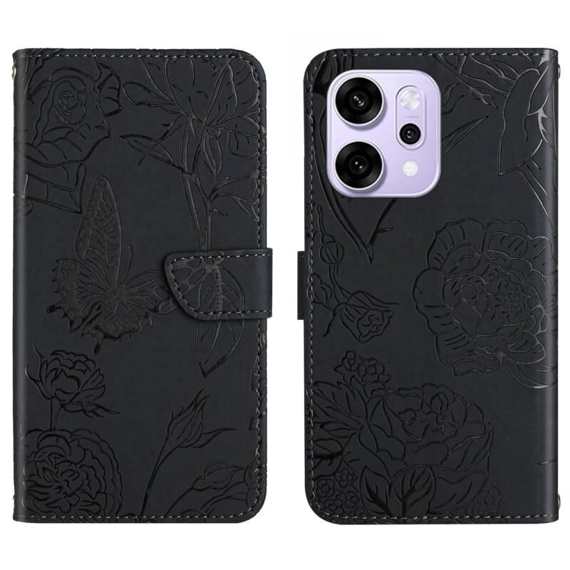 For OPPO Reno14 Pro 5G Global HT03 Skin Feel Butterfly Embossed Flip Leather Phone Case(Black)