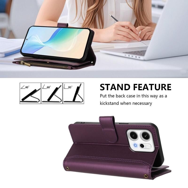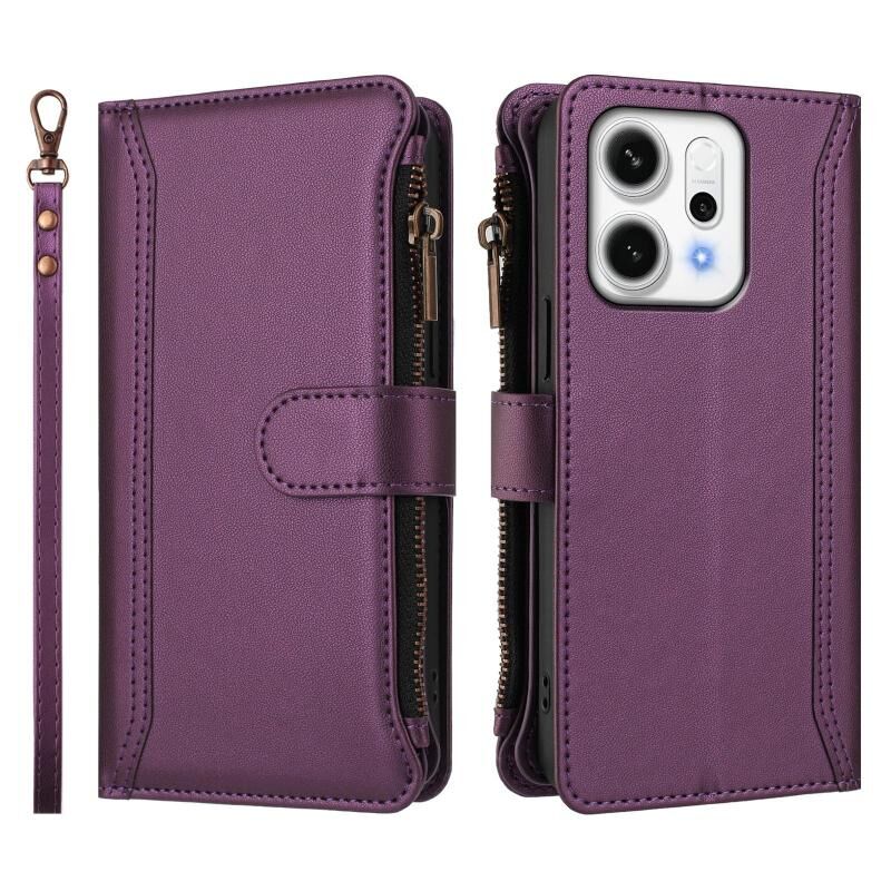 For OPPO Reno14 Pro 5G Global Magnetic Closure 9 Card Slots Zipper Leather Case with Hand Strap(Purple)