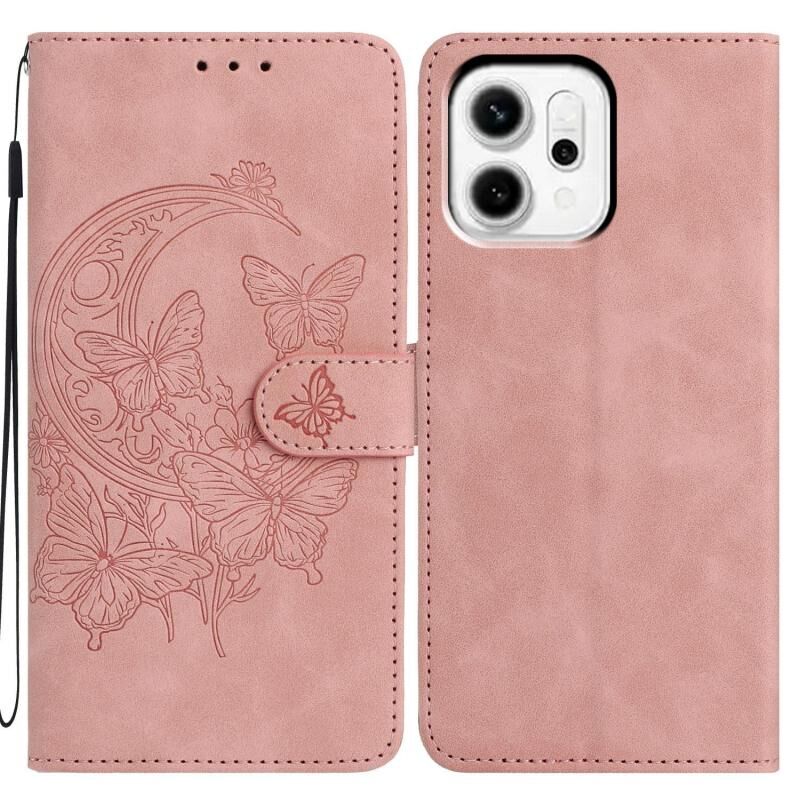 For OPPO Reno14 Pro 5G Global Moonlit Butterfly Dance Pattern Embossed Leather Phone Case(Pink)