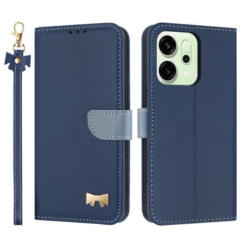 For OPPO Reno14 Pro 5G Metal Bow Leather Phone Case with Hand Strap(Dark Blue)