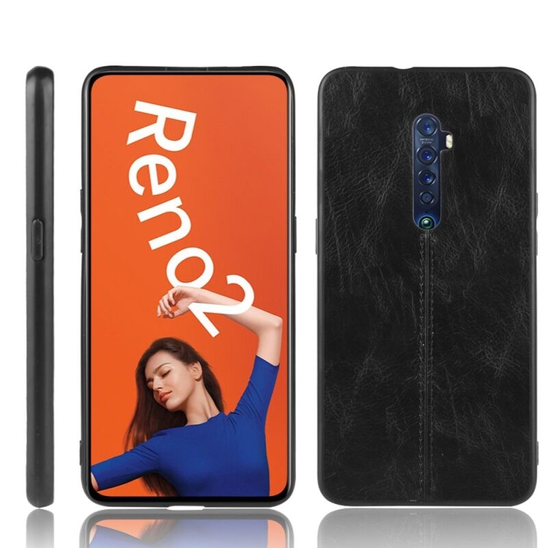 Θήκη για Oppo Reno2 ανθεκτική στις κρούσεις, με μοτίβο ραφής αγελάδας, από PC + PU + TPU (Μαύρο)