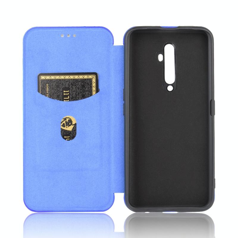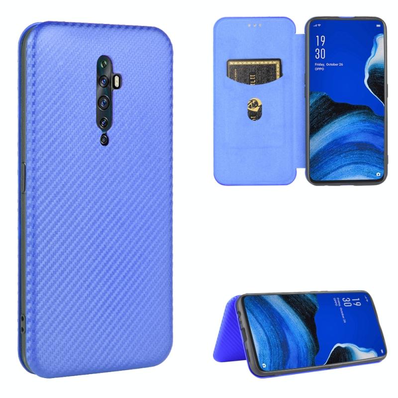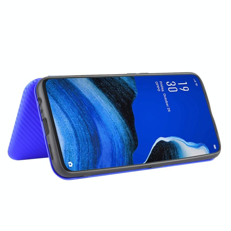 For OPPO Reno2 Z / F Carbon Fiber Texture Horizontal Flip TPU + PC + PU Leather Case with Card Slot(Blue)