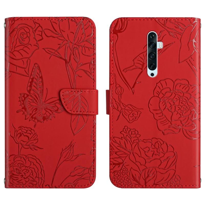 Θήκη τηλεφώνου από δέρμα με ανάγλυφο σχέδιο πεταλούδας και παιώνιας για OPPO Reno2 Z / F (Κόκκινο)