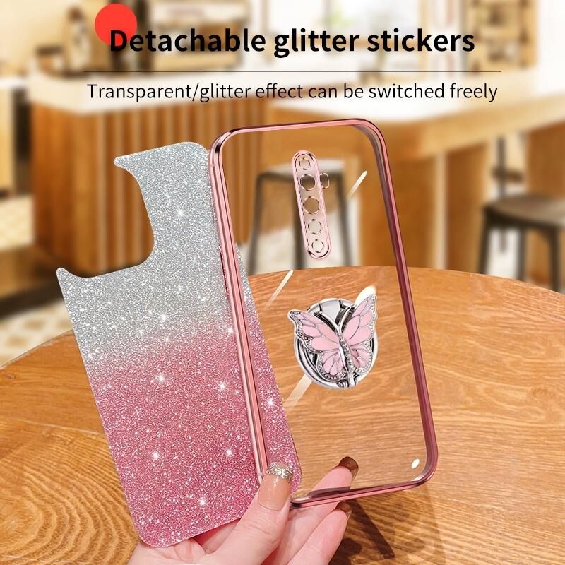 Θήκη κινητού τηλεφώνου OPPO Reno2 Z με επιμετάλλωση, διαβαθμισμένη λάμψη, πεταλούδα (Μπλε Σιέρρα)