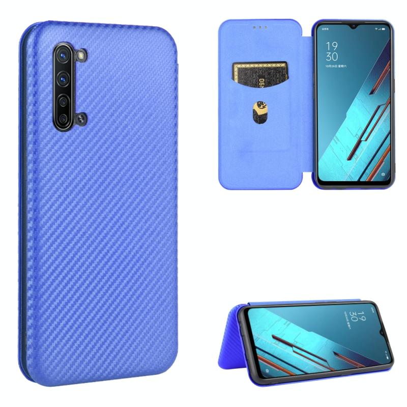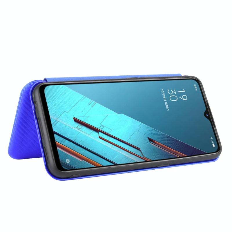 For OPPO Reno3 5G / Find X2 Lite Carbon Fiber Texture Horizontal Flip TPU + PC + PU Leather Case with Card Slot(Blue)