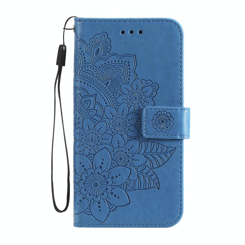 Για OPPO Reno3 5G / Find X2 Lite / K7 Θήκη οριζόντιας αναδίπλωσης από δερματίνη PU με ανάγλυφο σχέδιο 7 πέταλων λουλουδιών, με βάση στήριξης & υποδοχές καρτών & πορτοφόλι & κορνίζα φωτογραφιών (Μπλε)