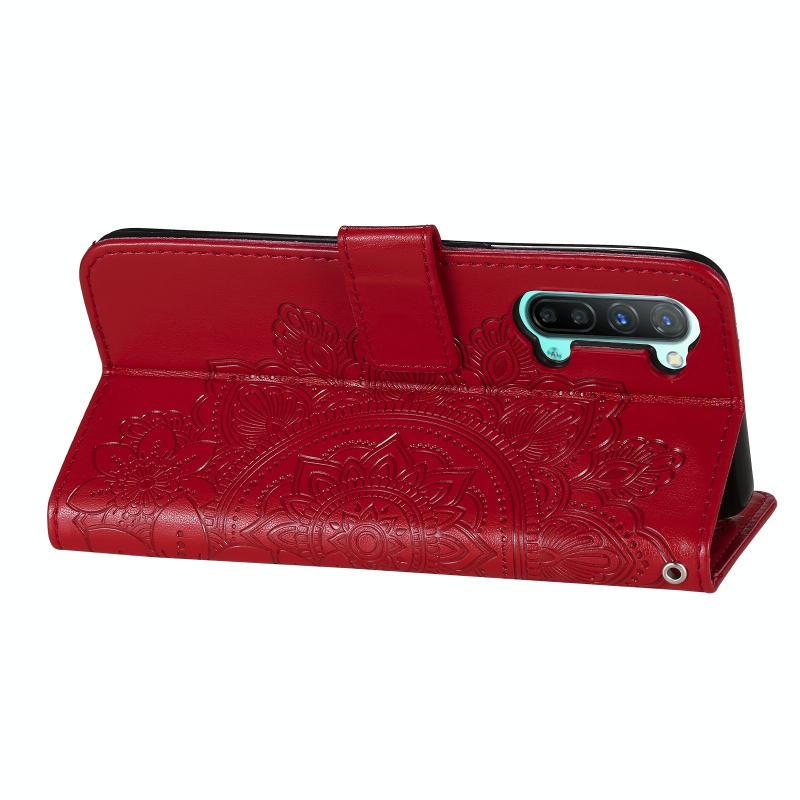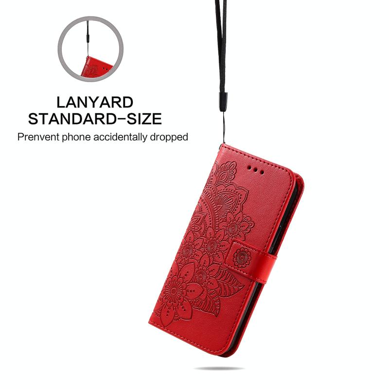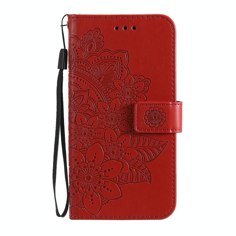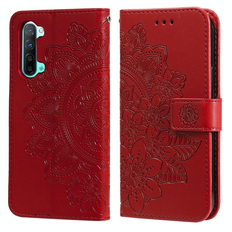 Για OPPO Reno3 5G / Find X2 Lite / K7 Θήκη οριζόντιας αναδίπλωσης από δερματίνη PU με ανάγλυφο σχέδιο 7 πέταλων λουλουδιών, με βάση στήριξης & υποδοχές καρτών & πορτοφόλι & κορνίζα φωτογραφιών (Κόκκινο)