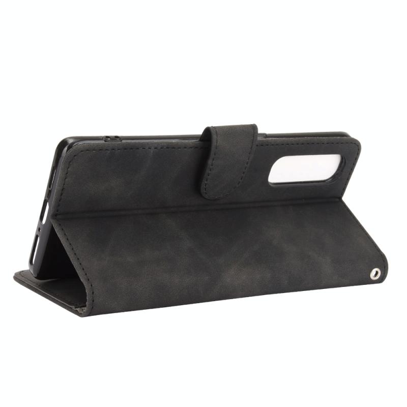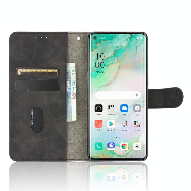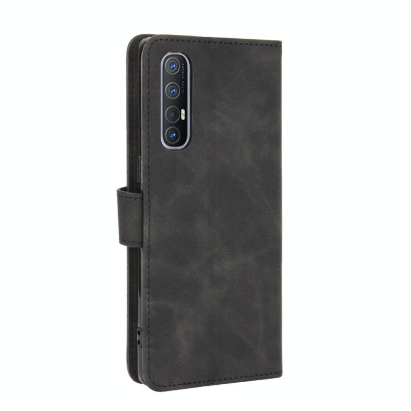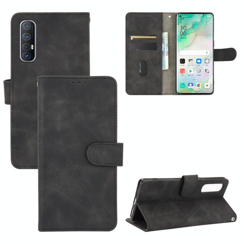 For OPPO Reno3 5G (Japanese Version) Solid Color Skin Feel Magnetic Buckle Horizontal Flip Calf Texture PU Leather Case with Holder & Card Slots & Wallet(Black)