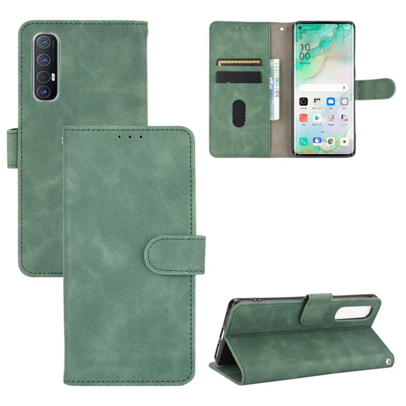 For OPPO Reno3 5G (Japanese Version) Solid Color Skin Feel Magnetic Buckle Horizontal Flip Calf Texture PU Leather Case with Holder & Card Slots & Wallet(Green)
