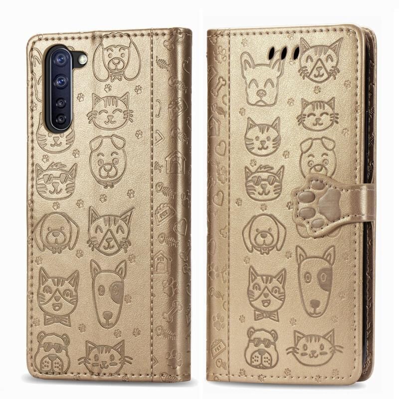 Θήκη δέρματος οριζόντιας αναδίπλωσης για OPPO Reno3 A με ανάγλυφα σχέδια χαριτωμένων γάτας και σκύλου, με βάση στήριξης & υποδοχές καρτών & πορτοφόλι & κορδόνι (Ροζ)