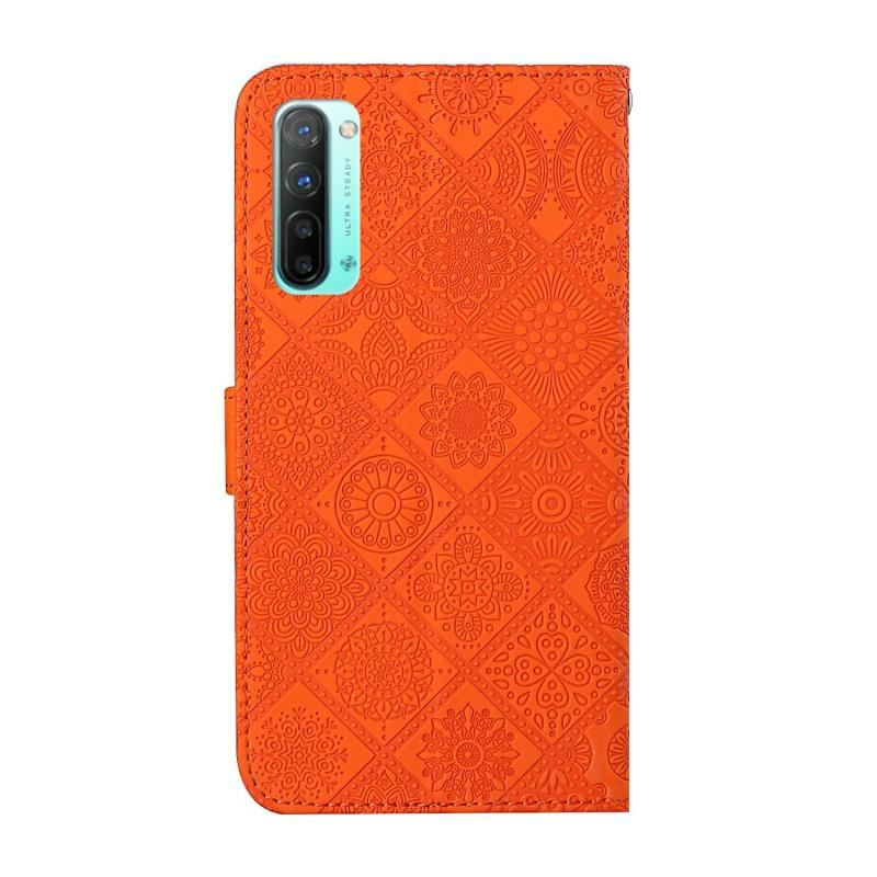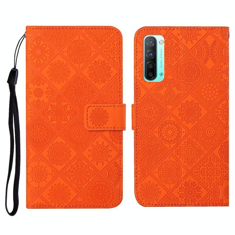 Θήκη δέρματος οριζόντιας αναδίπλωσης για OPPO Reno3 με έθνικ μοτίβο ανάγλυφου, βάση στήριξης, θήκες καρτών, πορτοφόλι & λουρί (Λευκό)