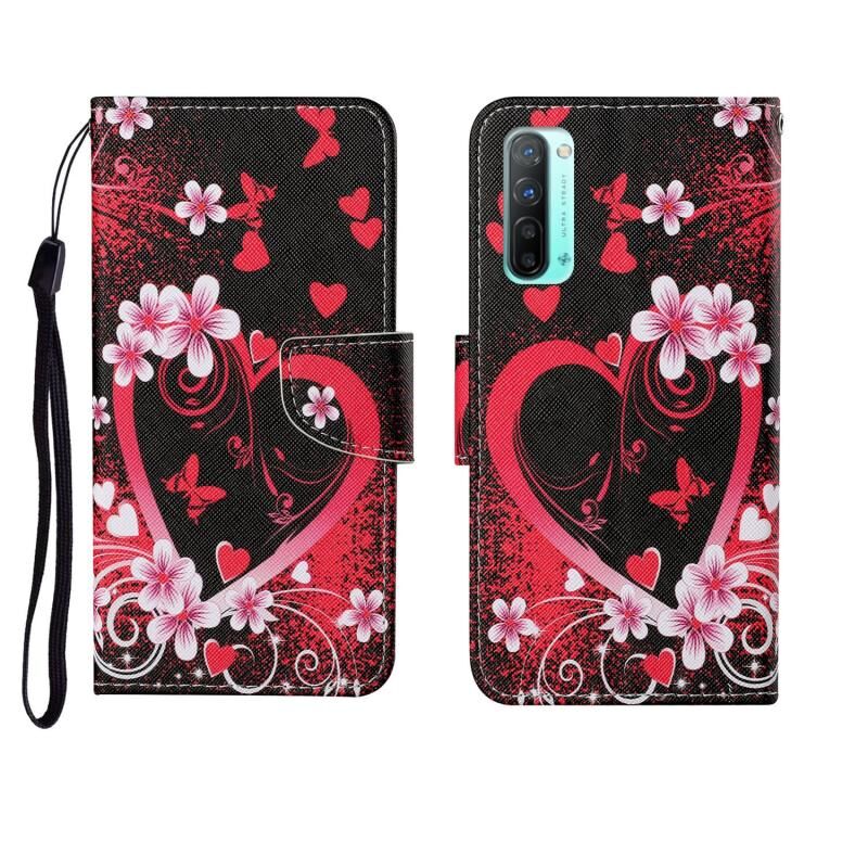 Θήκη για OPPO Reno3 με ζωγραφιστό σχέδιο, οριζόντια αναδίπλωση, από δέρμα (Κόκκινη Καρδιά)