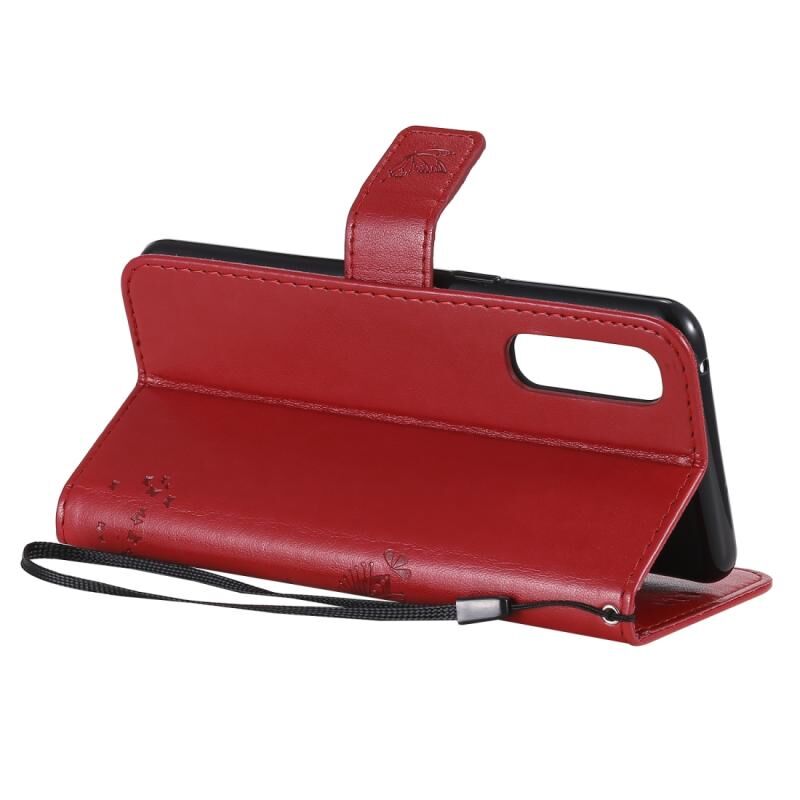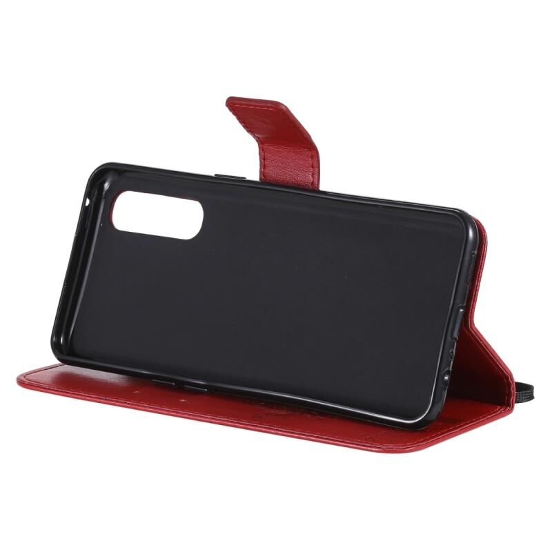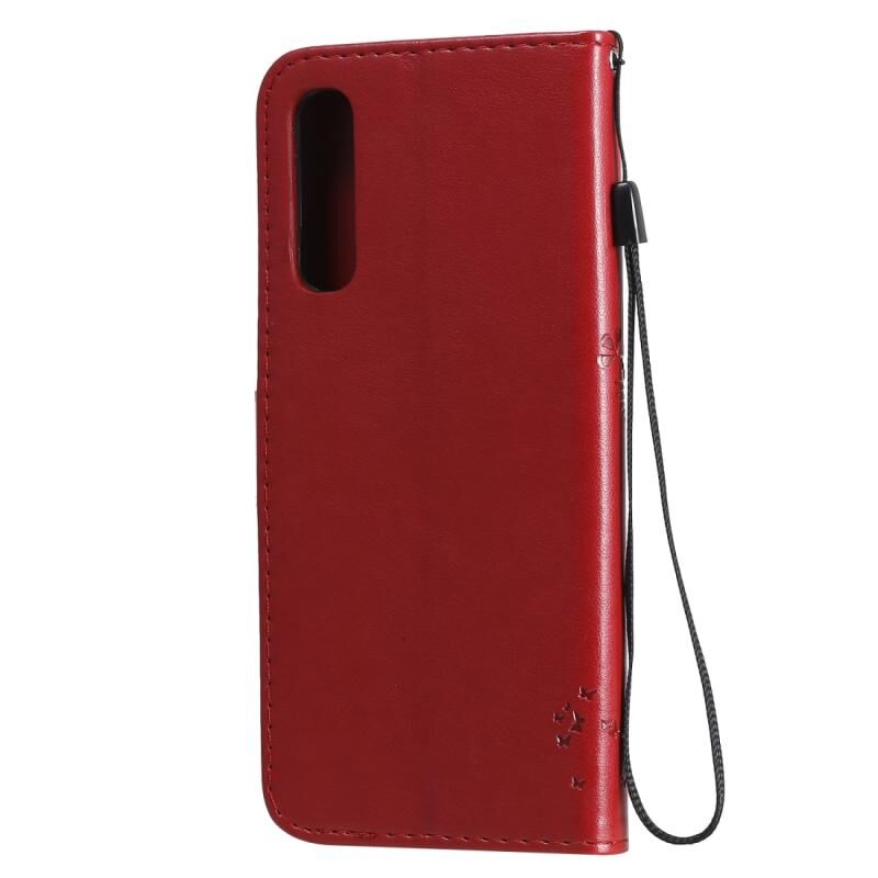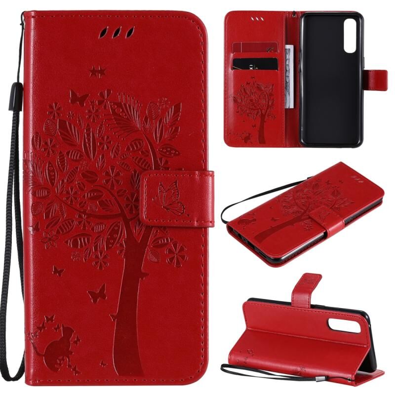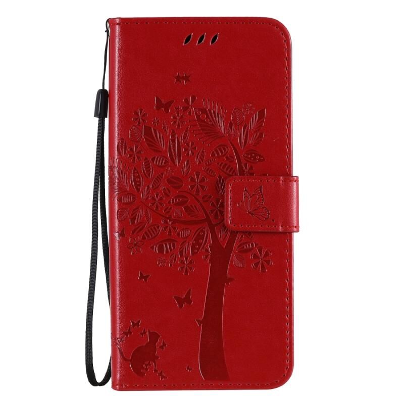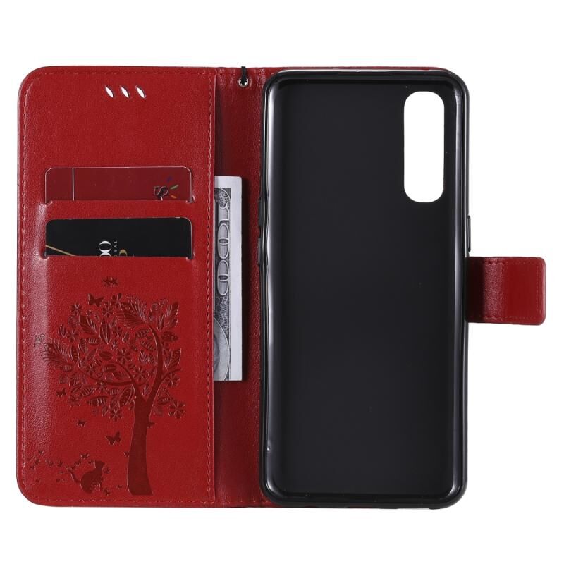 Θήκη δέρματος οριζόντιας αναδίπλωσης για Oppo Reno3 Pro 4G με ανάγλυφο σχέδιο δέντρου & γάτας, με βάση στήριξης & θήκες καρτών & πορτοφόλι & κορδόνι (Κόκκινο)