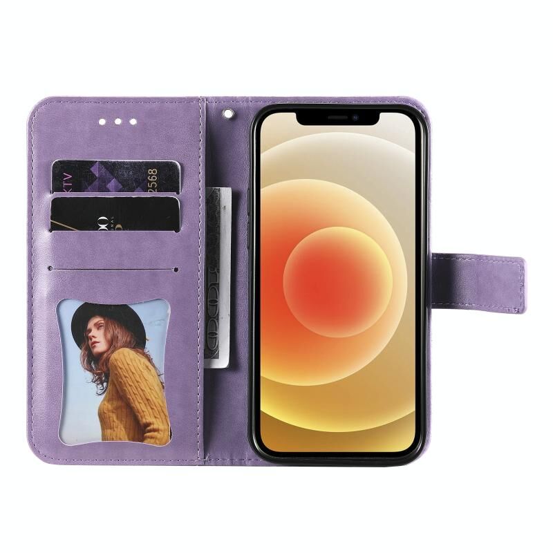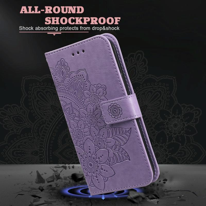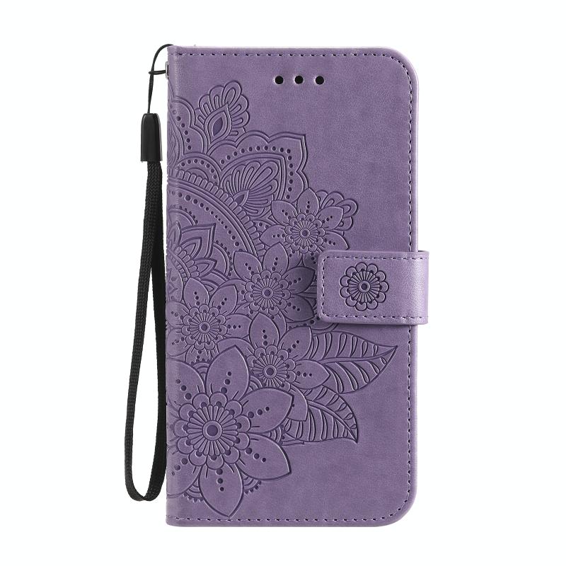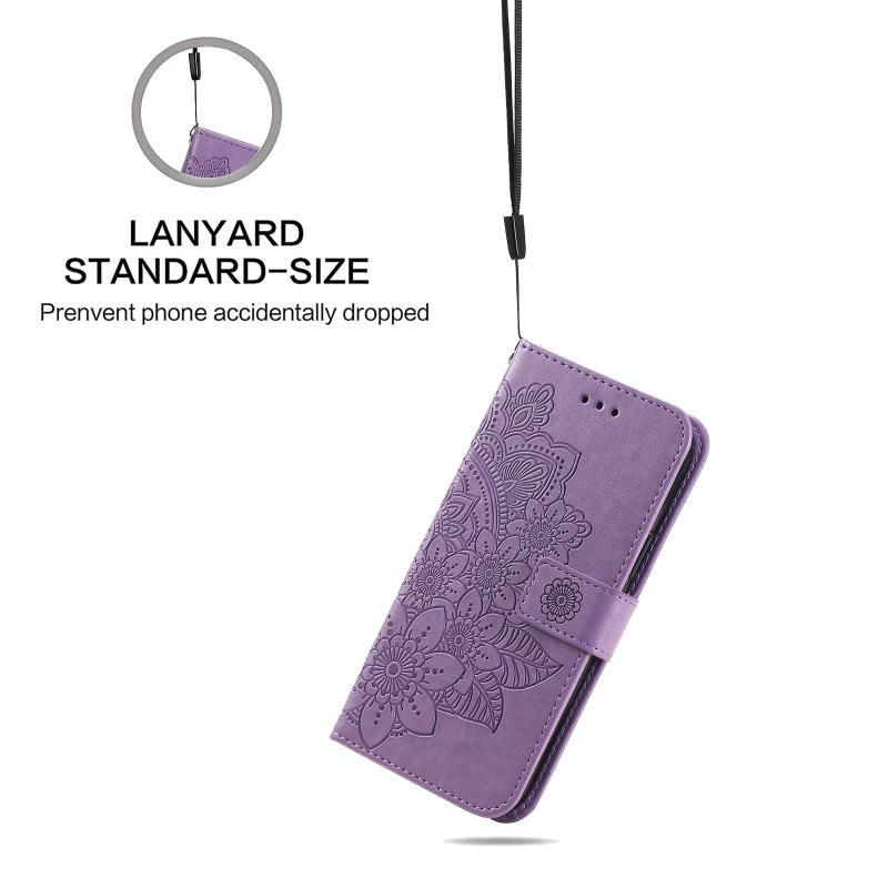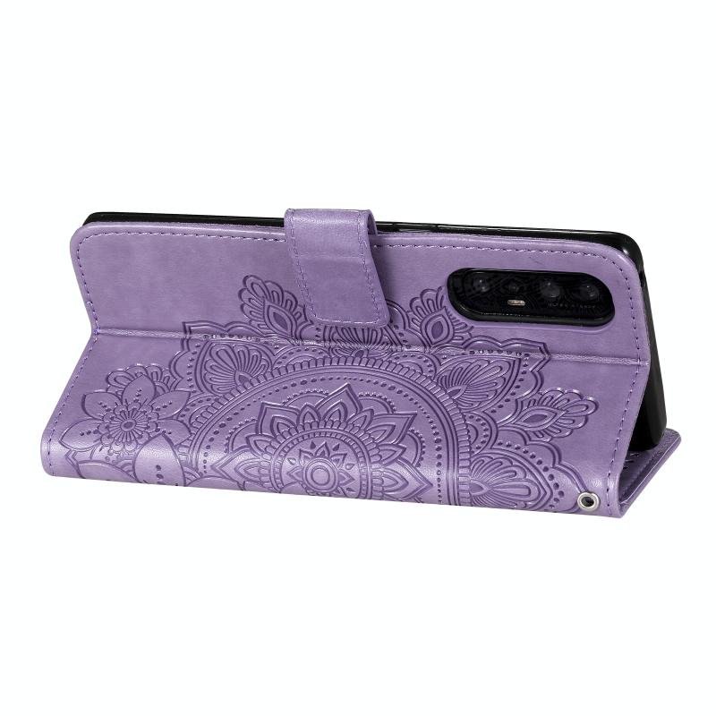 Για OPPO Reno3 Pro 5G / Find X2 Neo Θήκη Οριζόντιας Αναδίπλωσης από Δερματίνη PU με 7-πεταλάκια Λουλουδιών σε Ρελιέ, με Στήριξη & Θήκες Καρτών & Πορτοφόλι & Κορνίζα Φωτογραφιών (ανοιχτό μωβ)