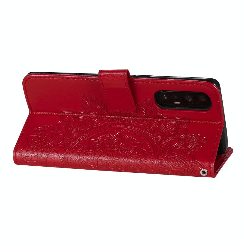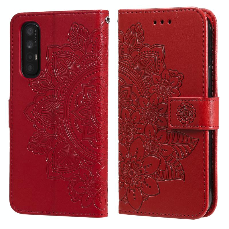 Για OPPO Reno3 Pro 5G / Find X2 Neo Θήκη Οριζόντιας Αναδίπλωσης από Δερματίνη PU με 7-πεταλάκια Λουλουδιών σε Ρελιέ, με Στήριξη & Θήκες Καρτών & Πορτοφόλι & Κορνίζα Φωτογραφιών (Χρυσό Ρόδι)