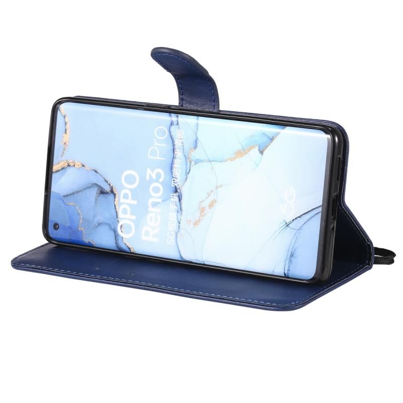 Για Oppo Reno3 Pro 5G / Find X2 Neo Αμιγές χρώμα οριζόντια Flip προστατευτική δερμάτινη θήκη με θήκη & υποδοχές για κάρτες & πορτοφόλι & πλαίσιο φωτογραφιών & κορδόνι (μπλε)