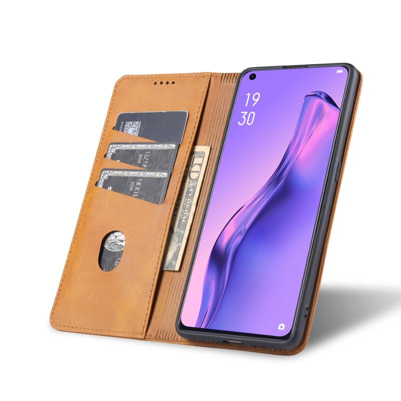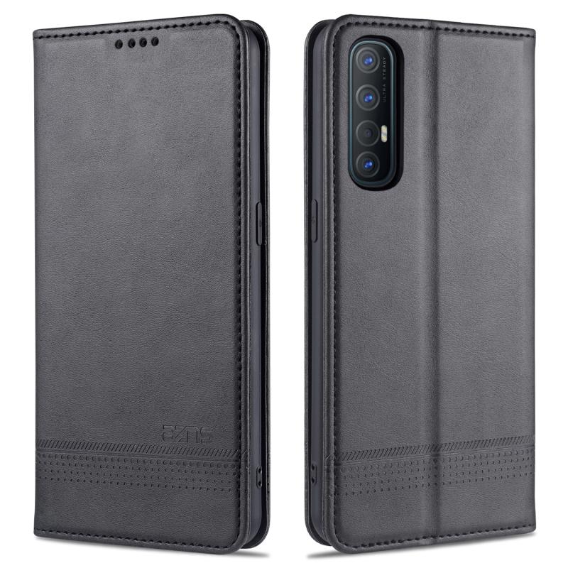 Θήκη δέρματος οριζόντιας αναδίπλωσης με μαγνητική υφή μοσχαριού για OPPO Reno3 Pro AZNS με υποδοχές καρτών & βάση & πορτοφόλι (Μαύρο) (Μαύρο)