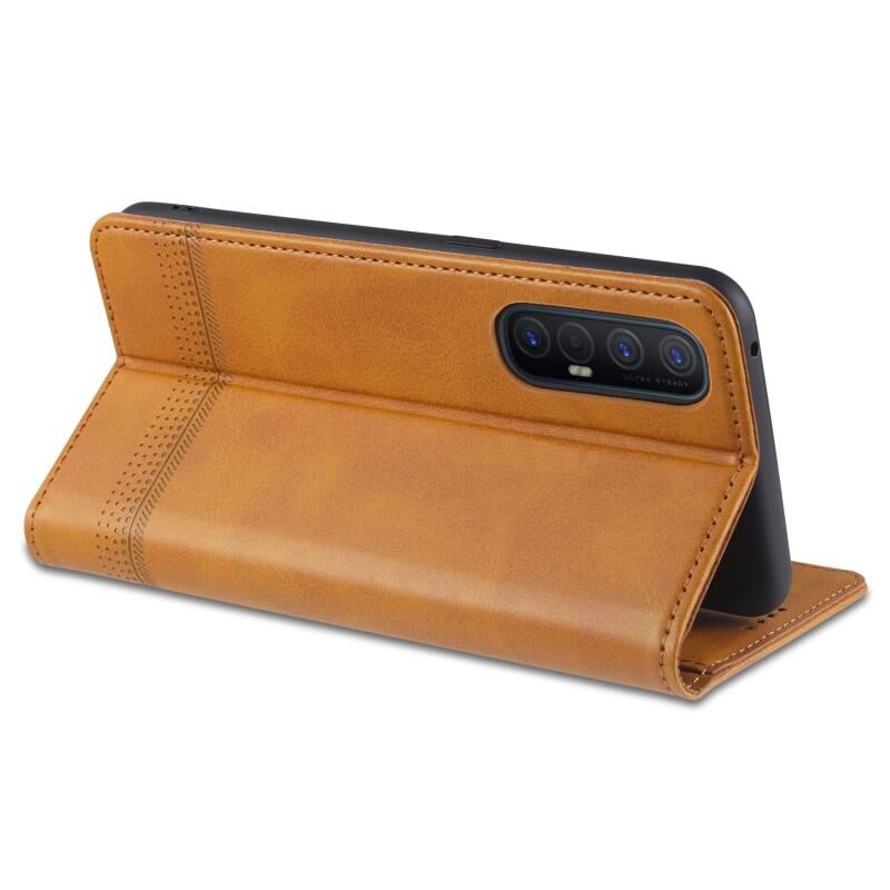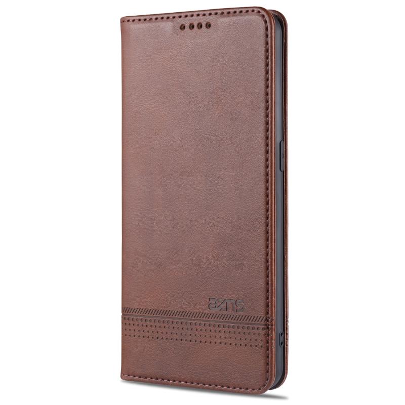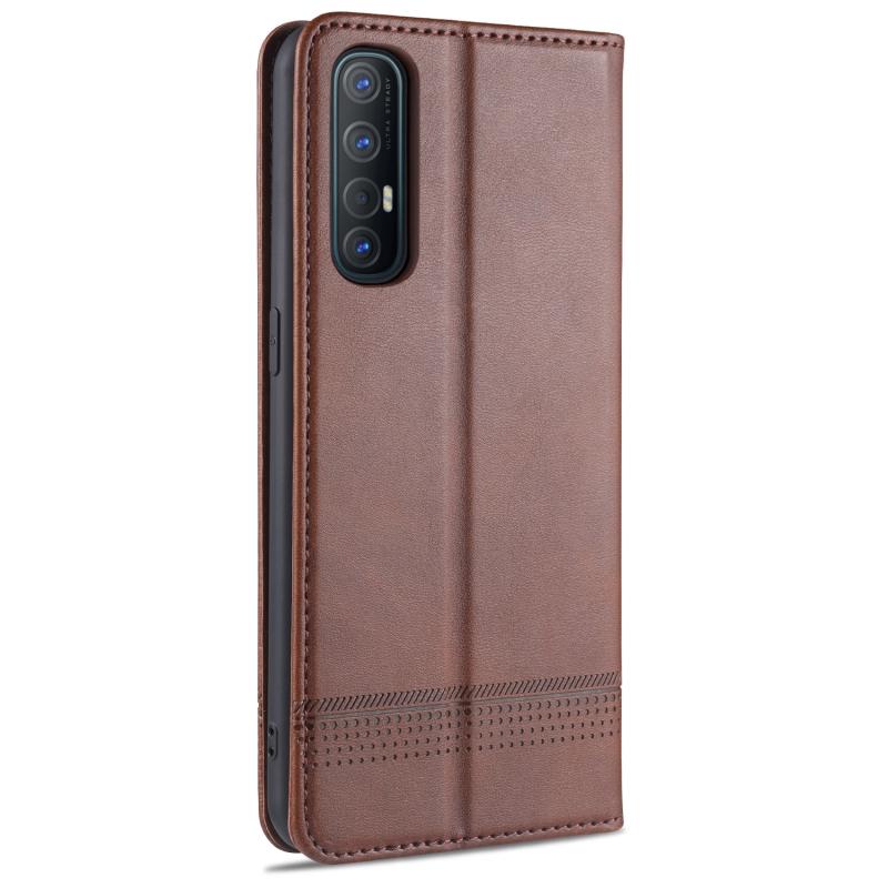 Θήκη δέρματος οριζόντιας αναδίπλωσης με μαγνητική υφή μοσχαριού για OPPO Reno3 Pro AZNS με υποδοχές καρτών & βάση & πορτοφόλι (Μαύρο) (Σκούρο καφέ)