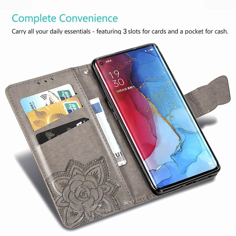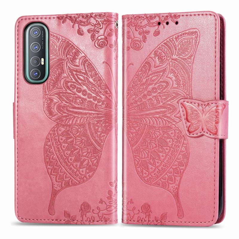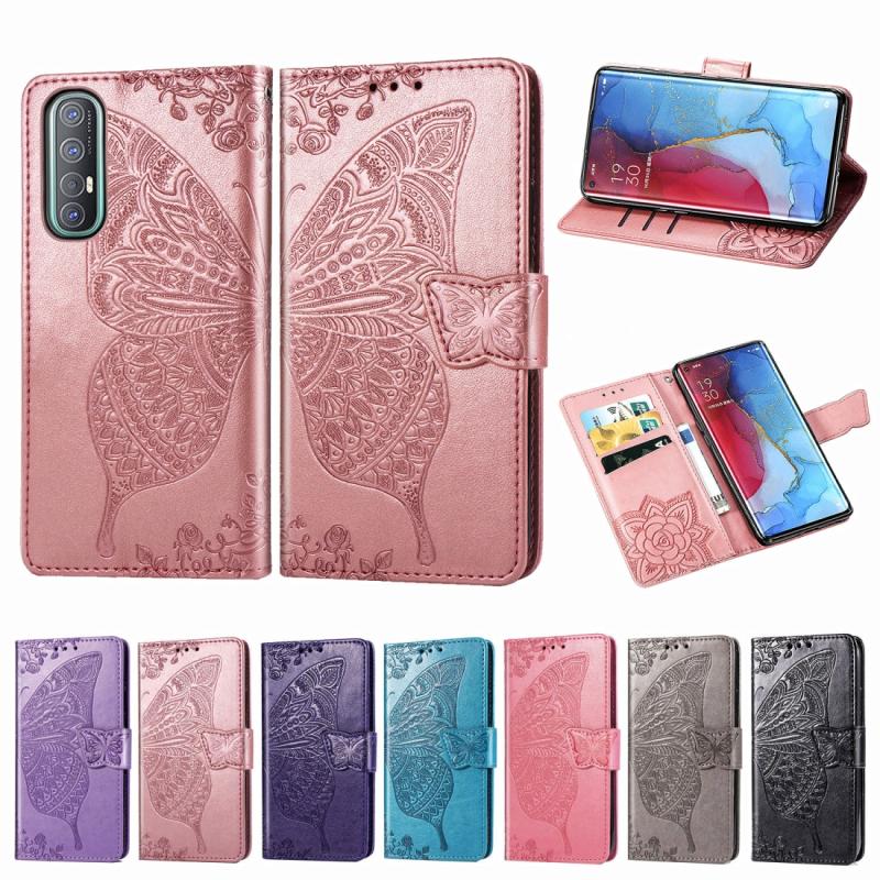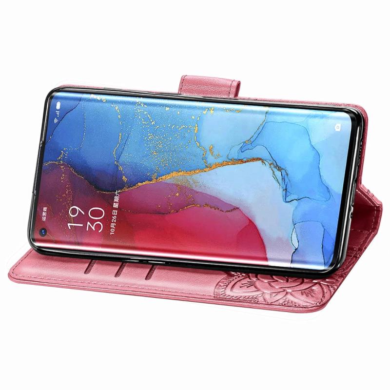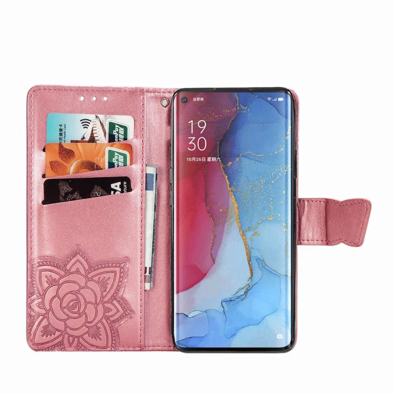 For OPPO Reno3 Pro Butterfly Love Flower Embossed Horizontal Flip Leather Case with Bracket / Card Slot / Wallet / Lanyard(Pink)