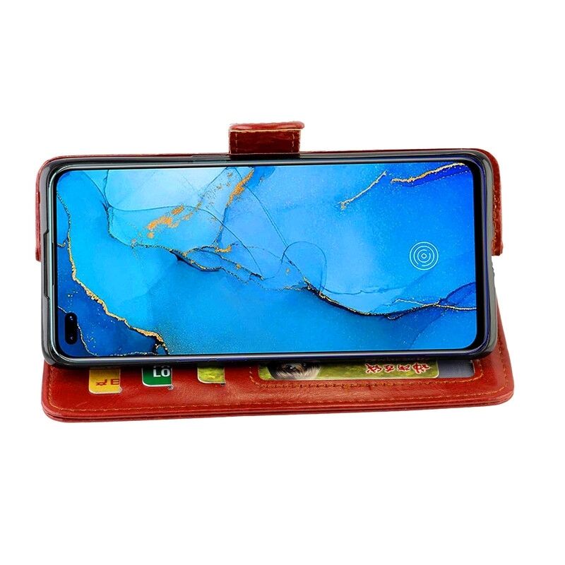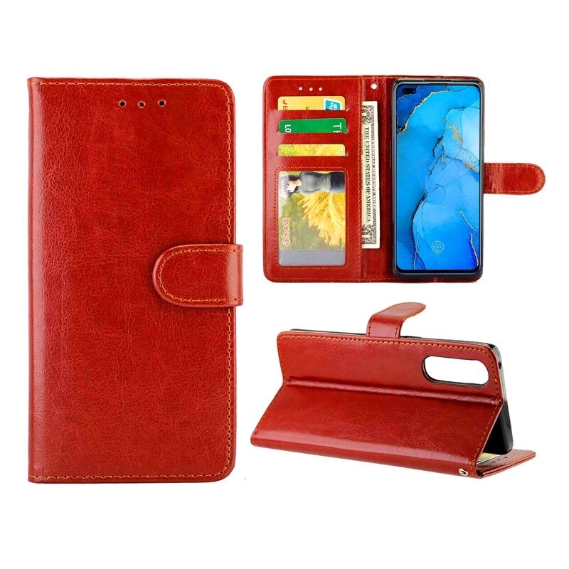 Θήκη προστασίας οριζόντιας αναδίπλωσης για OPPO Reno3 Pro με υφή Crazy Horse, δέρμα, με βάση στήριξης & υποδοχές καρτών & πορτοφόλι & κορνίζα φωτογραφιών (Καφέ)