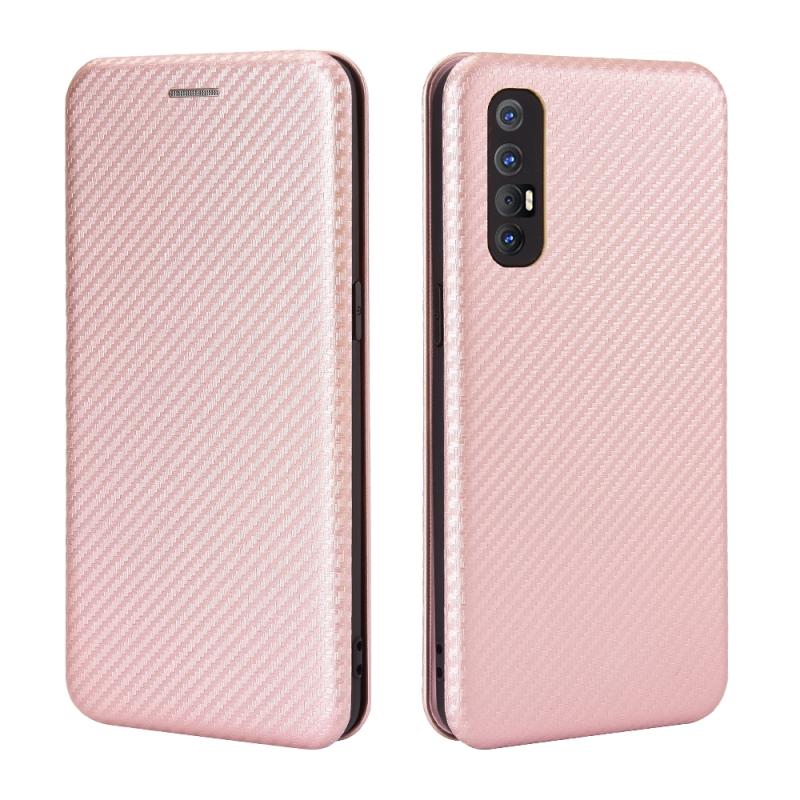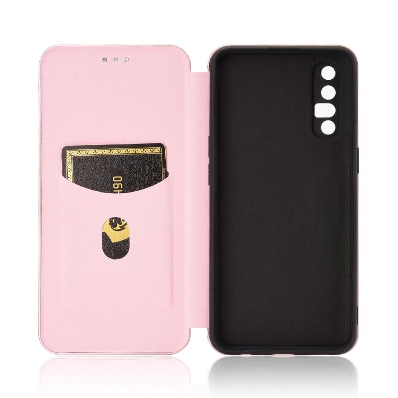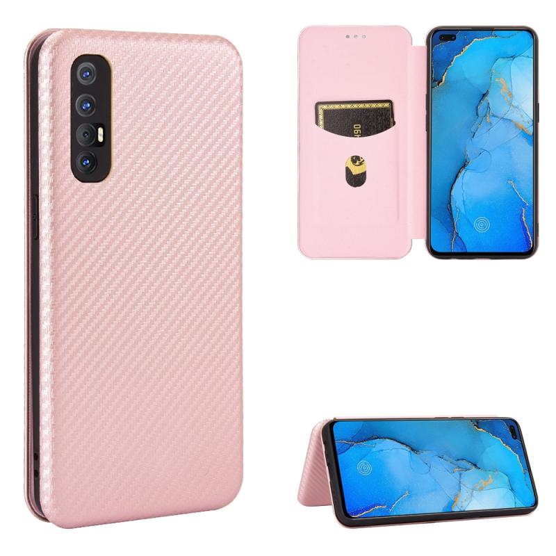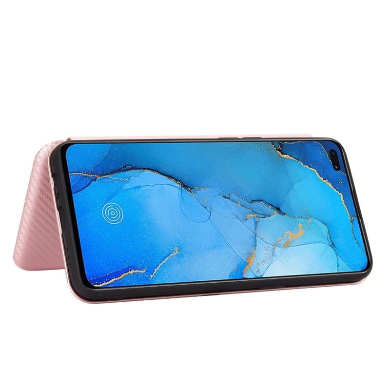 For OPPO Reno3 Pro Overseas Version (India / Southeast Asia) Carbon Fiber Texture Horizontal Flip TPU + PC + PU Leather Case with Card Slot & Lanyard(Pink)