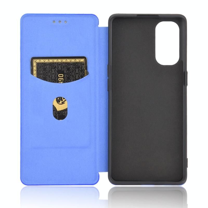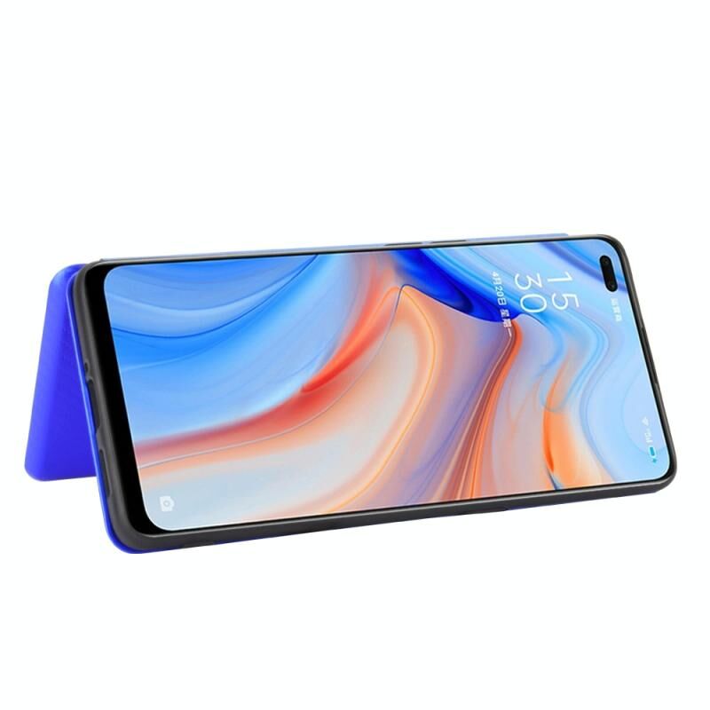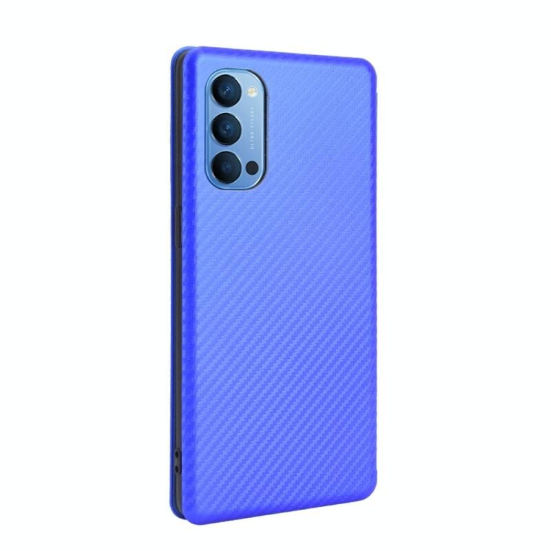 Για OPPO Reno4 4G Carbon Fiber Υφή Οριζόντια Flip TPU + PC + PU δέρμα υπόθεση με υποδοχή κάρτας (Μπλε)