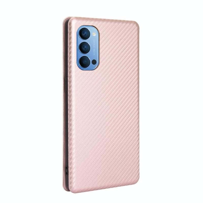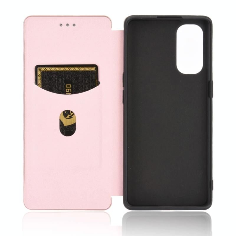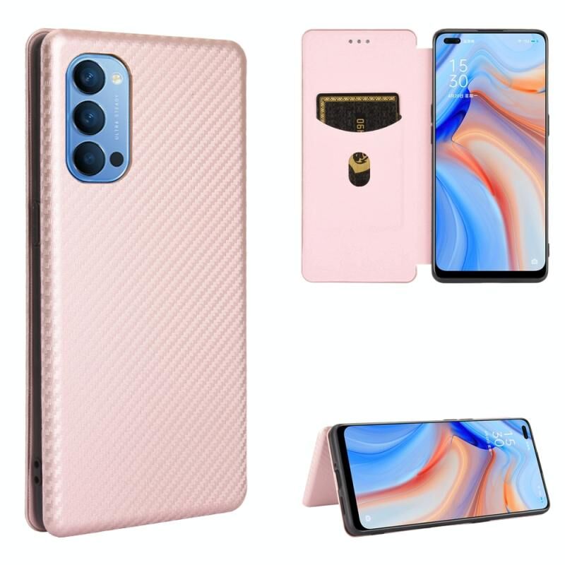 Για OPPO Reno4 4G Carbon Fiber Υφή Οριζόντια Flip TPU + PC + PU δέρμα υπόθεση με υποδοχή κάρτας (ρόζ)