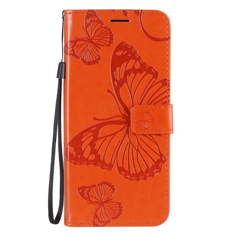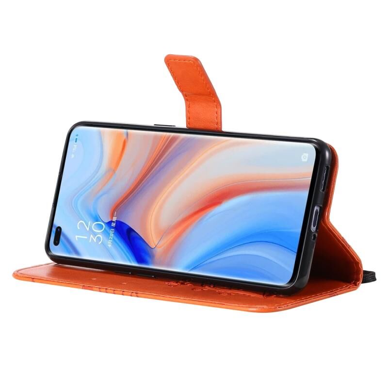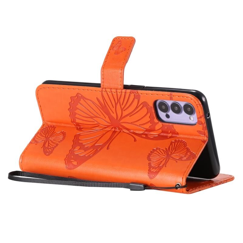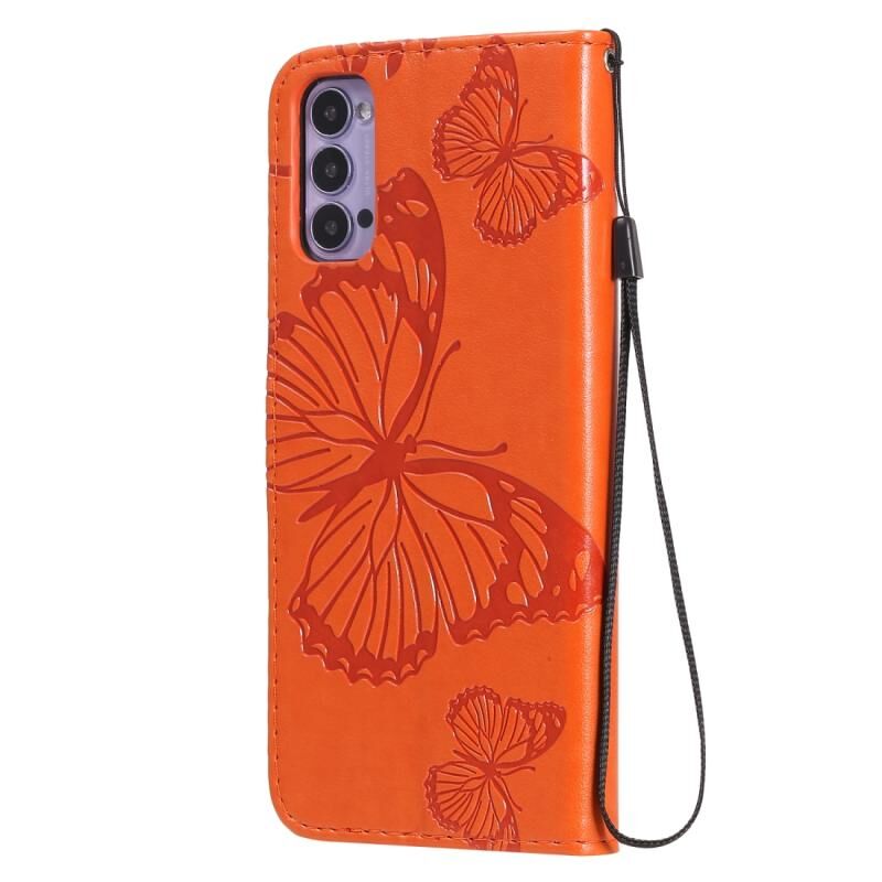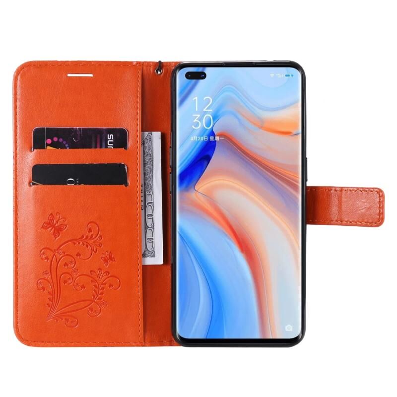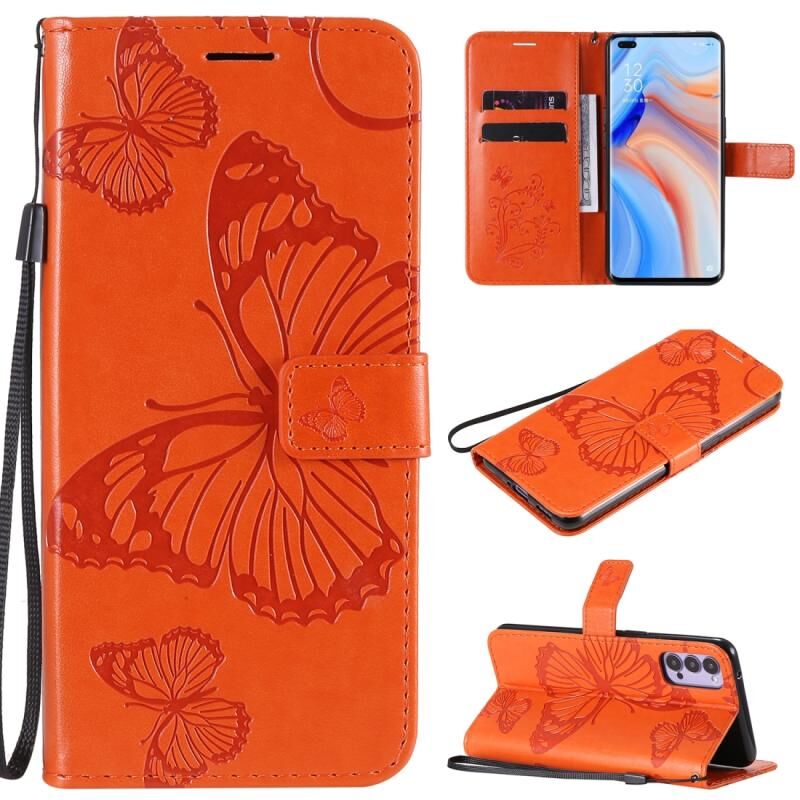 Για το OPPO Reno4 5G, θήκη δέρματος οριζόντιας αναδίπλωσης με ανάγλυφο σχέδιο 3D πεταλούδων, με βάση στήριξης, θήκη καρτών, πορτοφόλι και κορδόνι (Πορτοκαλί)