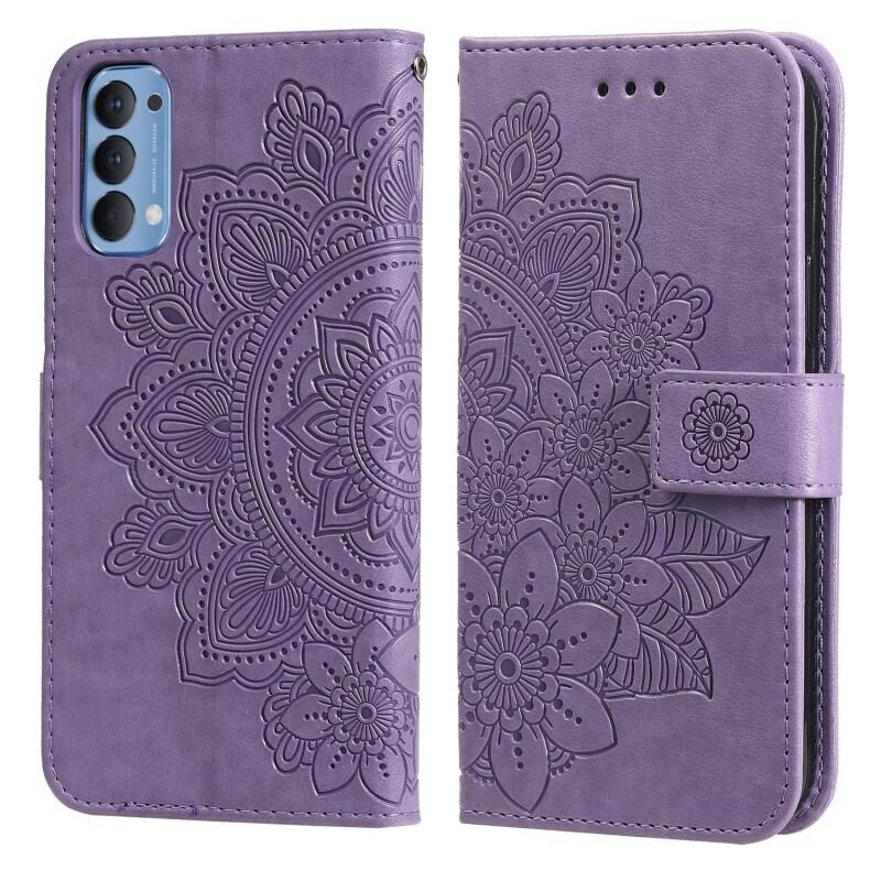 Για OPPO Reno4 5G 7-πέταλο λουλούδια ανάγλυφο μοτίβο οριζόντια Flip PU δέρμα υπόθεση με κάτοχο & υποδοχές για κάρτες & πορτοφόλι & πλαίσιο φωτογραφιών (Light Purple)
