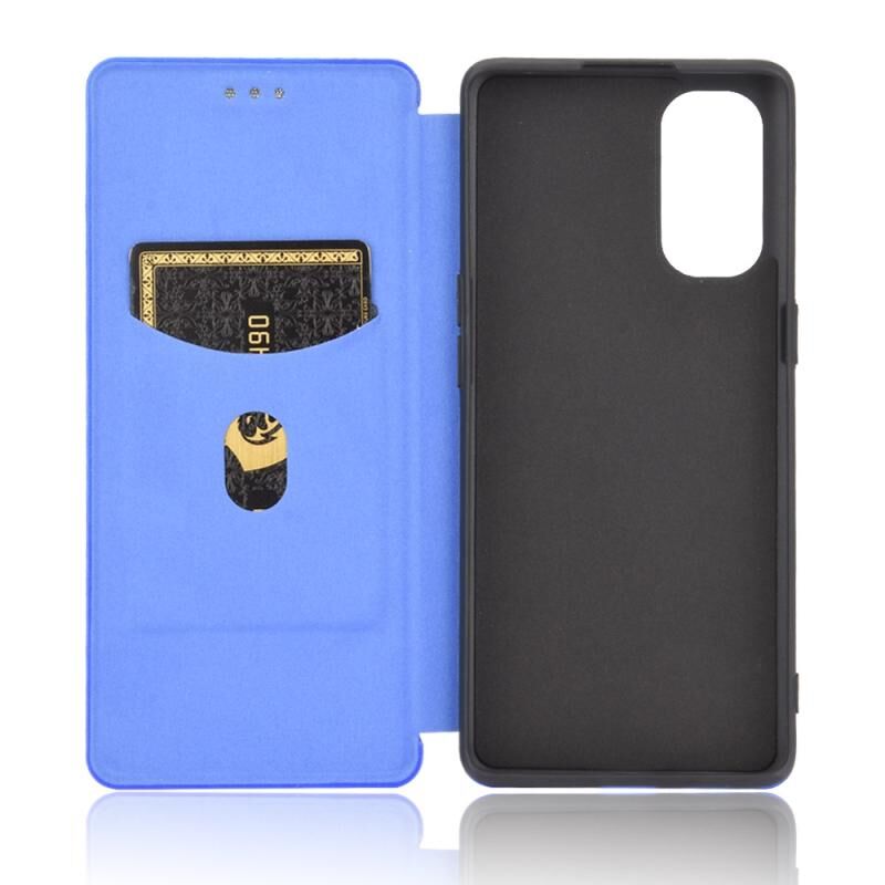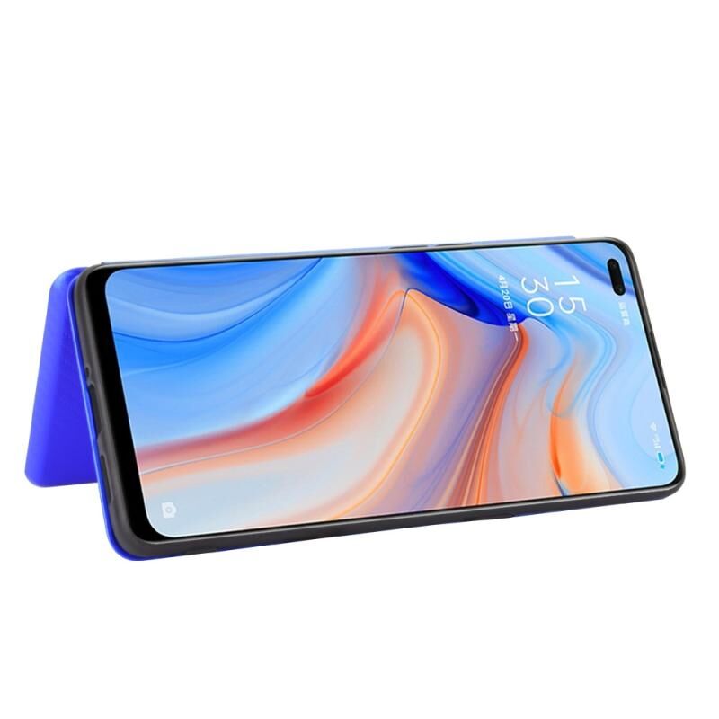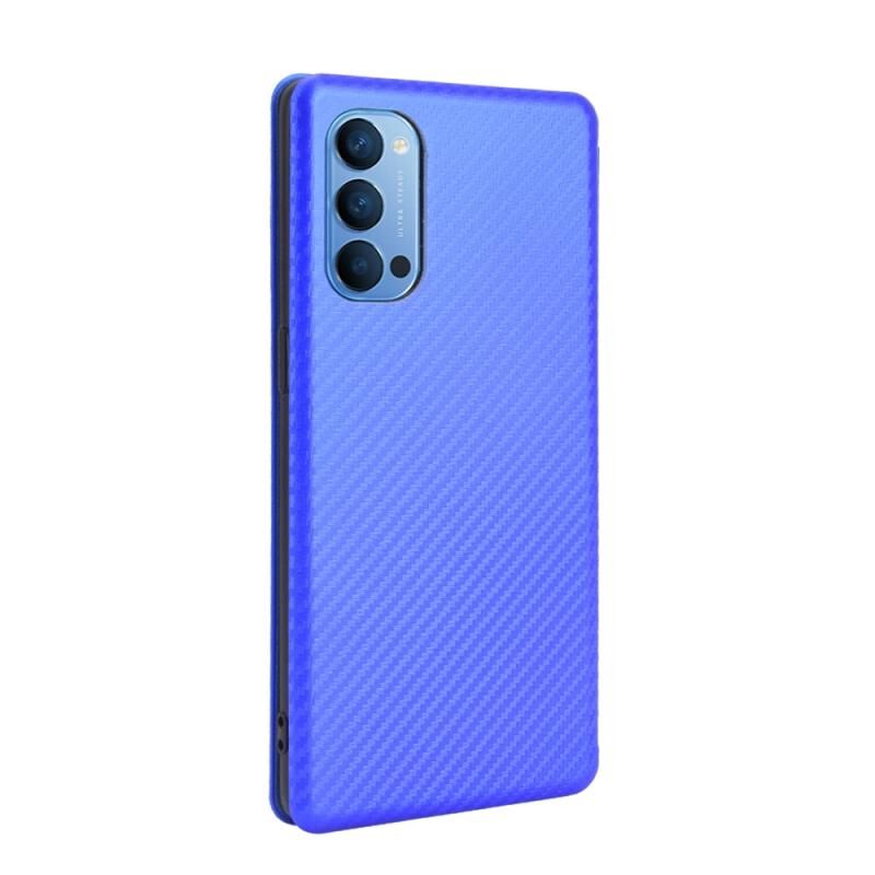 For OPPO Reno4 5G Carbon Fiber Texture Horizontal Flip TPU + PC + PU Leather Case with Card Slot(Blue)