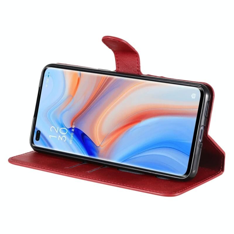 Για OPPO Reno4 5G Classic Calf υφή PU + TPU οριζόντια Flip δερμάτινη θήκη, με υποδοχή & υποδοχές καρτών & πορτοφόλι (κόκκινο)