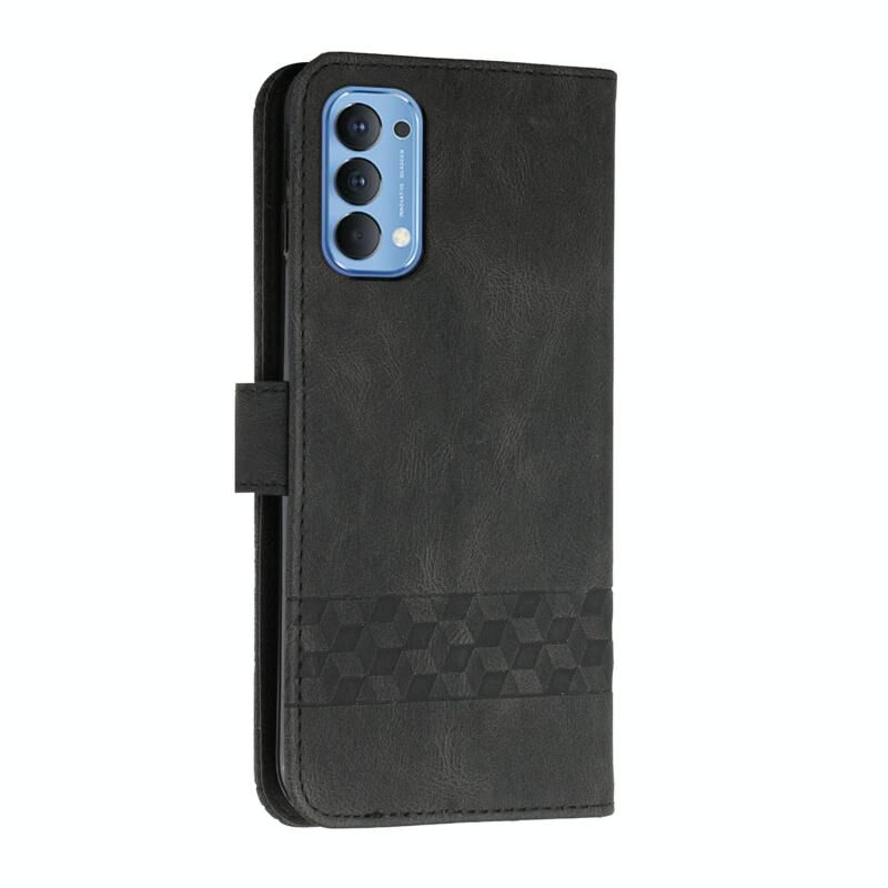 Θήκη τηλεφώνου από δέρμα με αναδιπλούμενο σχέδιο για OPPO Reno4 5G, με υφή κυβικού δέρματος (Σκούρο Καφέ)