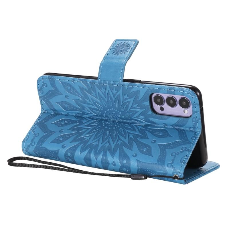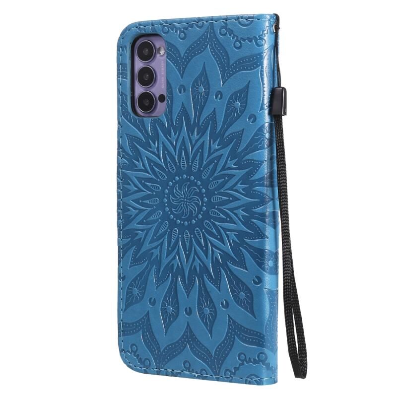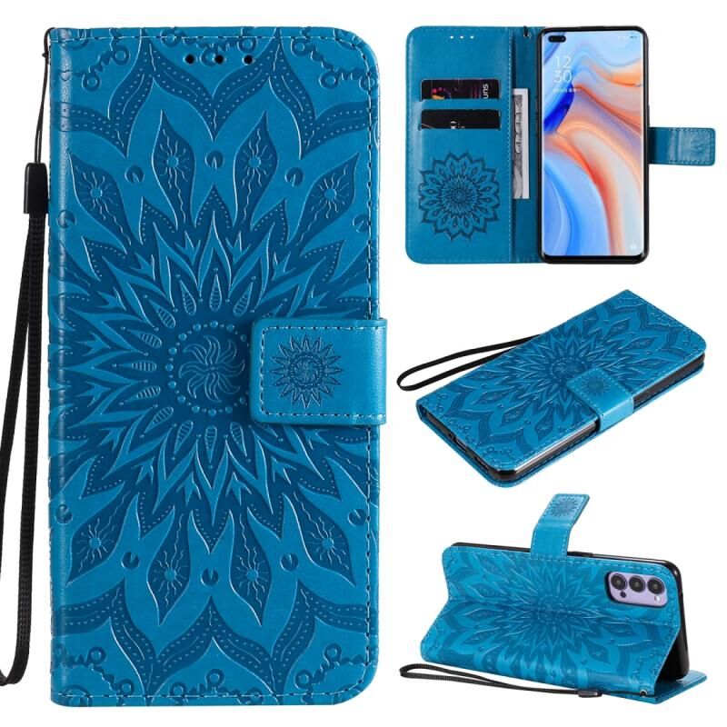 Για OPPO Reno4 5G Sun ανάγλυφο μοτίβο οριζόντια Flip δερμάτινη θήκη με υποδοχή κάρτας & κάτοχος & πορτοφόλι & κορδόνι (Μπλε)