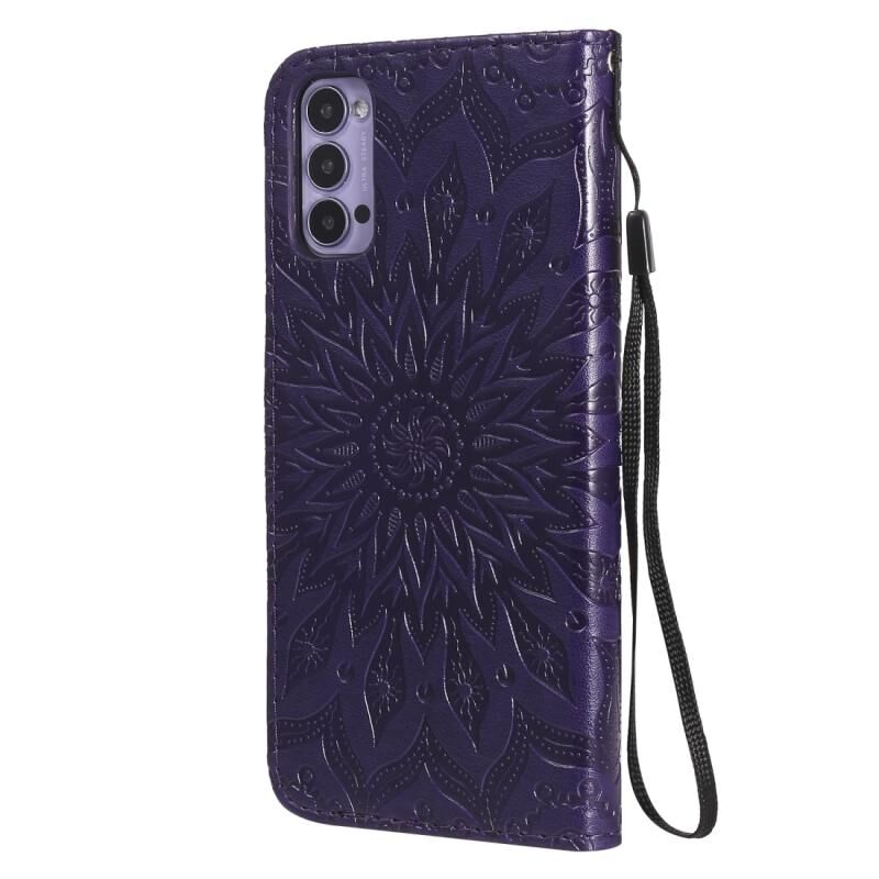 Για OPPO Reno4 5G Sun ανάγλυφο μοτίβο οριζόντια Flip δερμάτινη θήκη με υποδοχή κάρτας & κάτοχος & πορτοφόλι & κορδόνι (Μωβ)